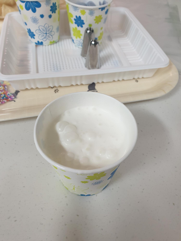 종이컵에 따랐을때 1-2센치 정도 덜 담아 주었어요
