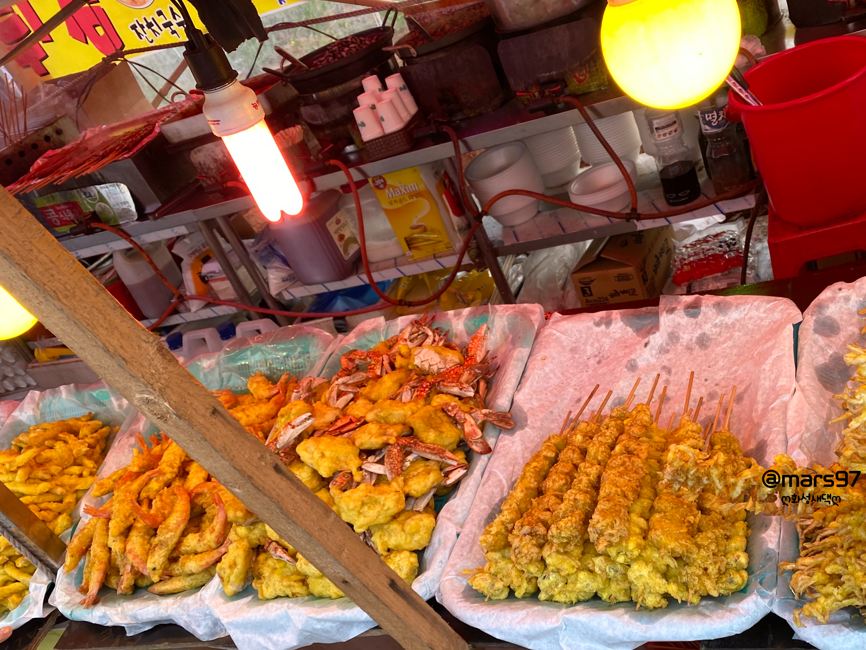 멀리에 포장마차? 같은 곳이 보이더라고요