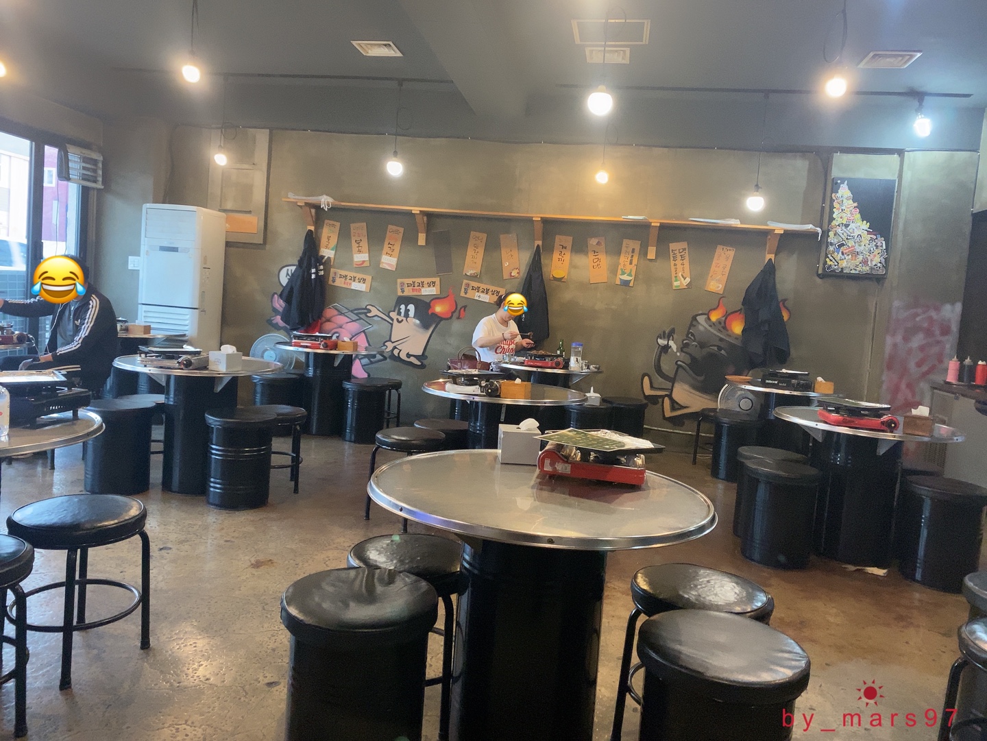 둥근 테이블 들이 넓직하게 떨어져 있어서