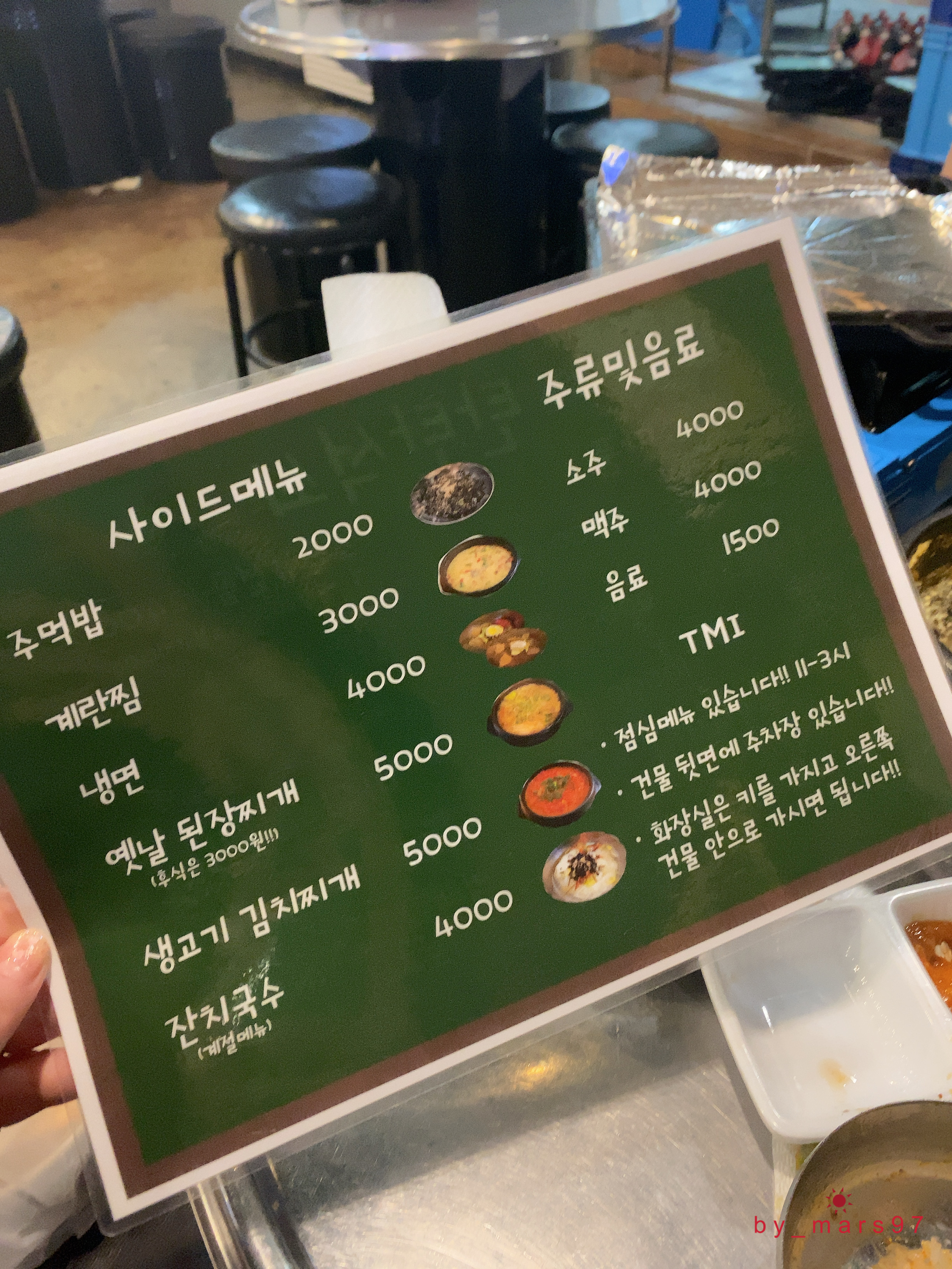 메뉴는 파 불고기, 고추장 불고기, 삼겹살 이 세가지를 무한리필로