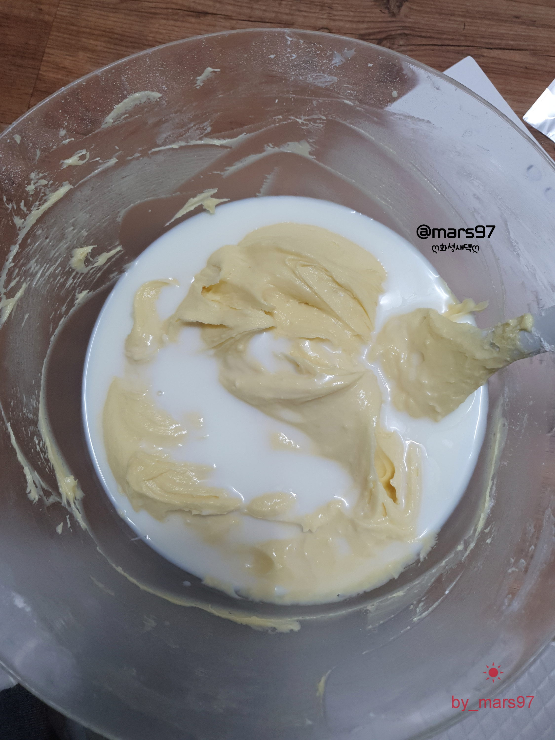 날가루가 보이지 않게 섞어준 다음,