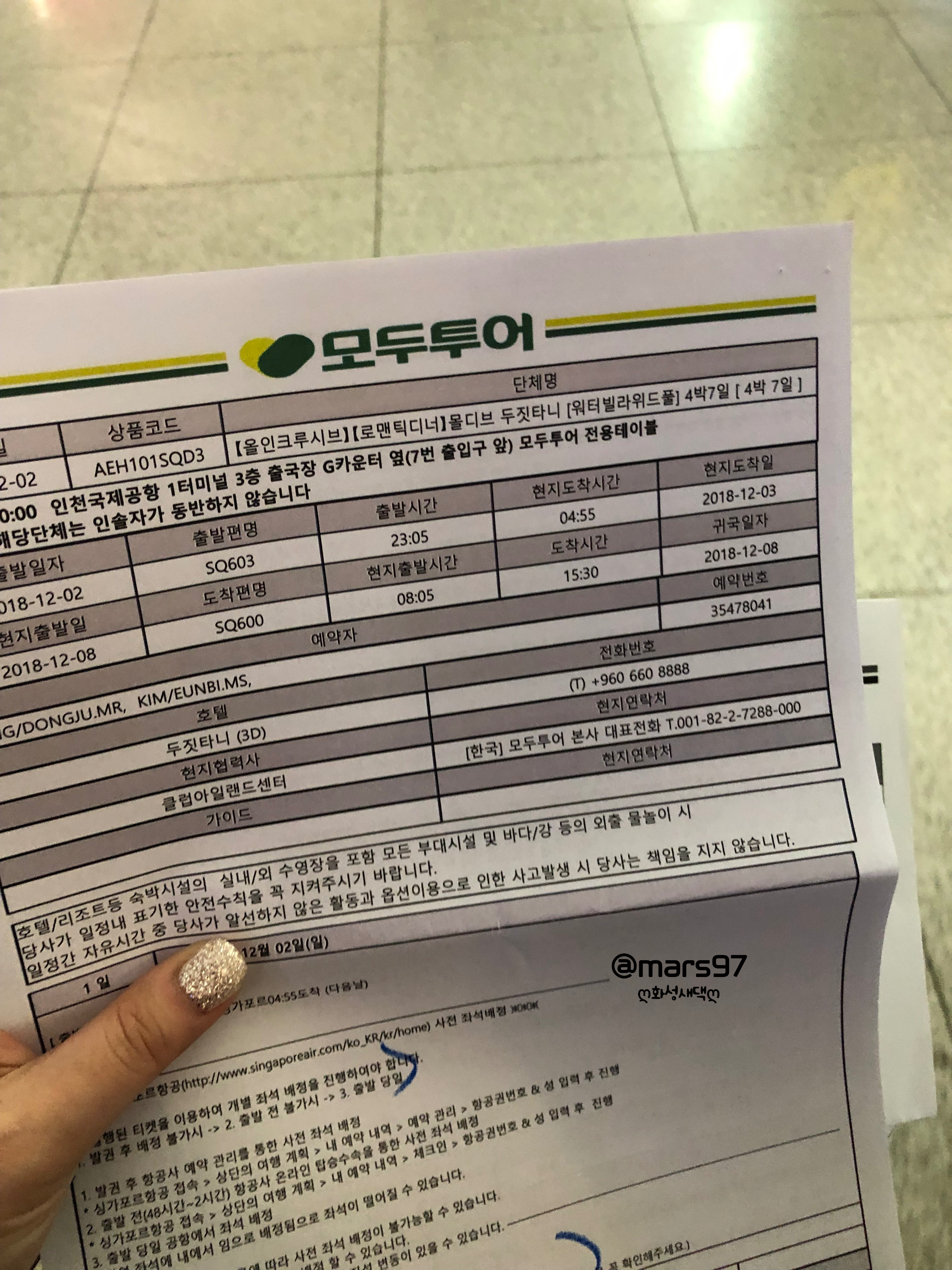 서둘러 여행사 직원을 만나 일정이 적힌 안내문을 받았어요