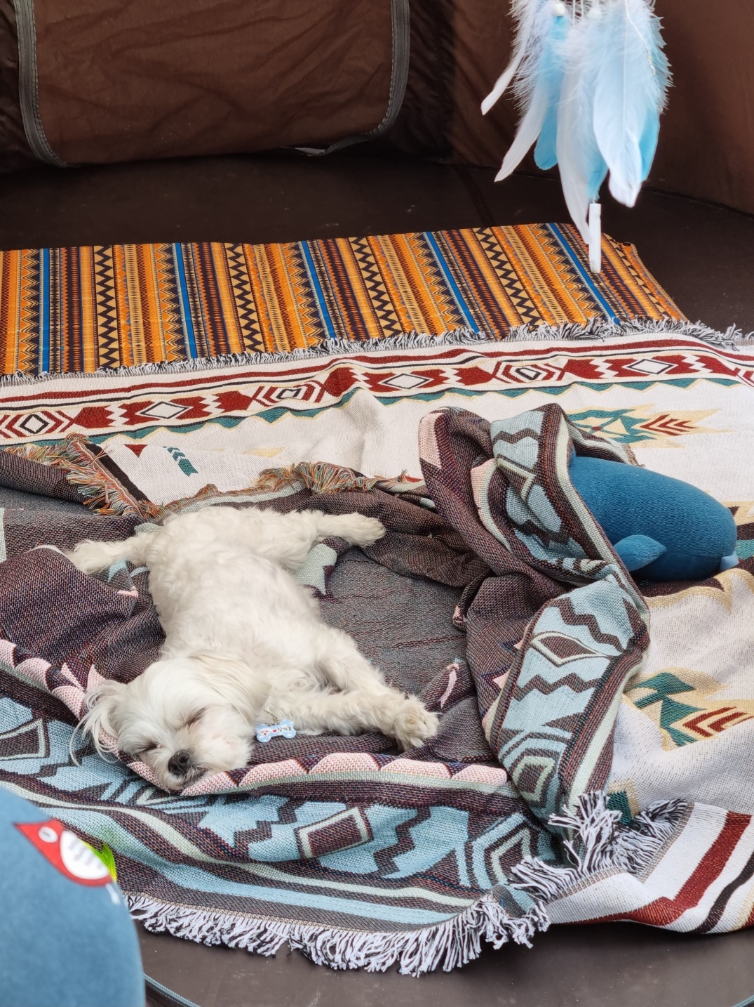 텐트안에 자충매트와 블랭킷도 깔아 주었어요