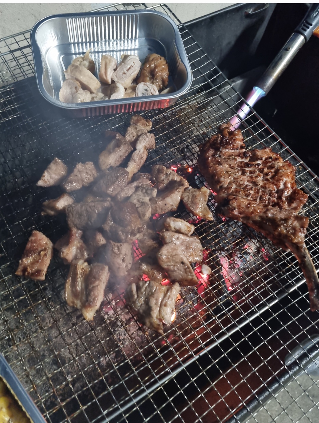 목살과 뼈 등심을 토치로-