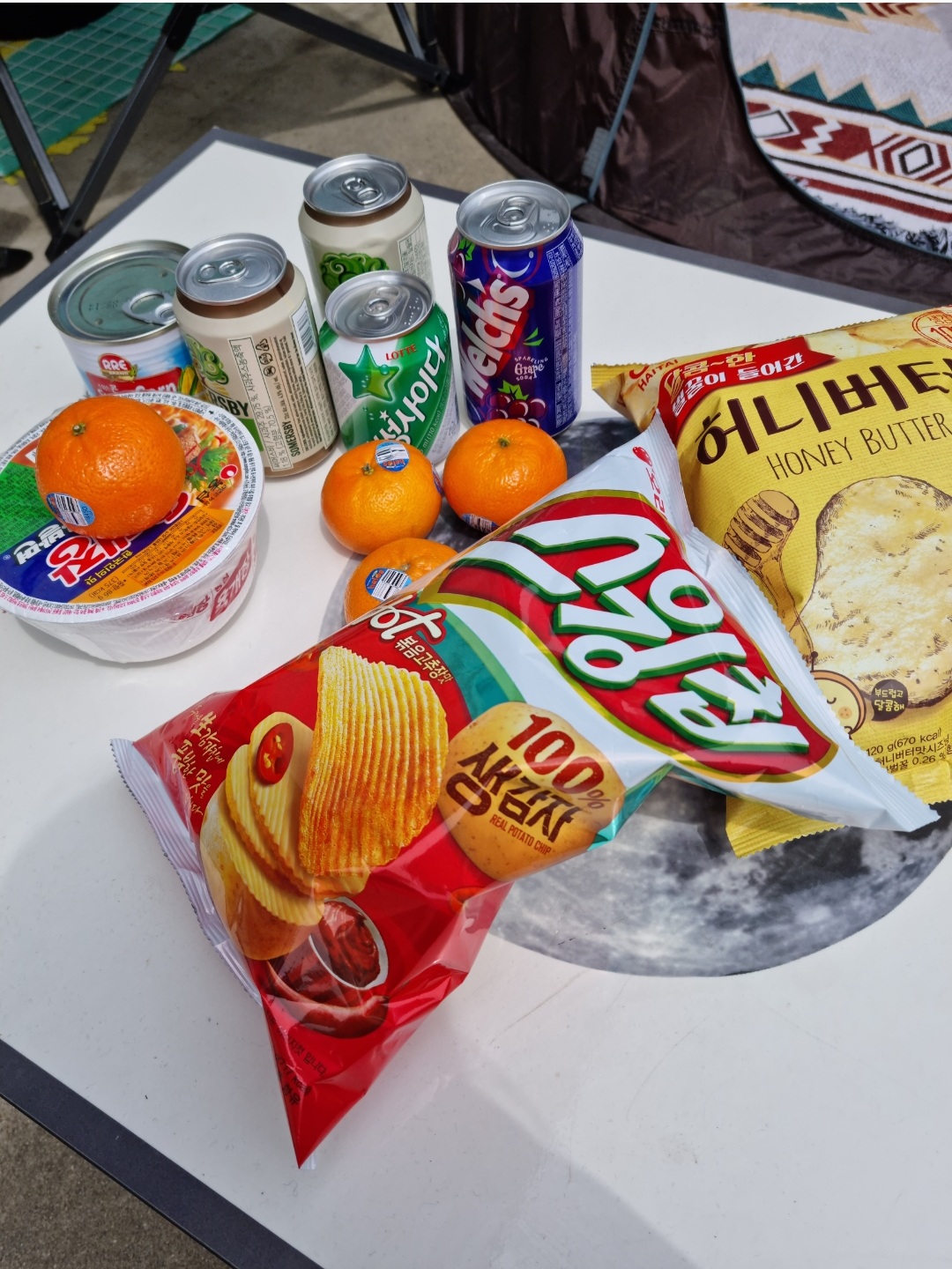 그래서 대충 과자와 음료수 그리고 맥주 귤같은 오렌지