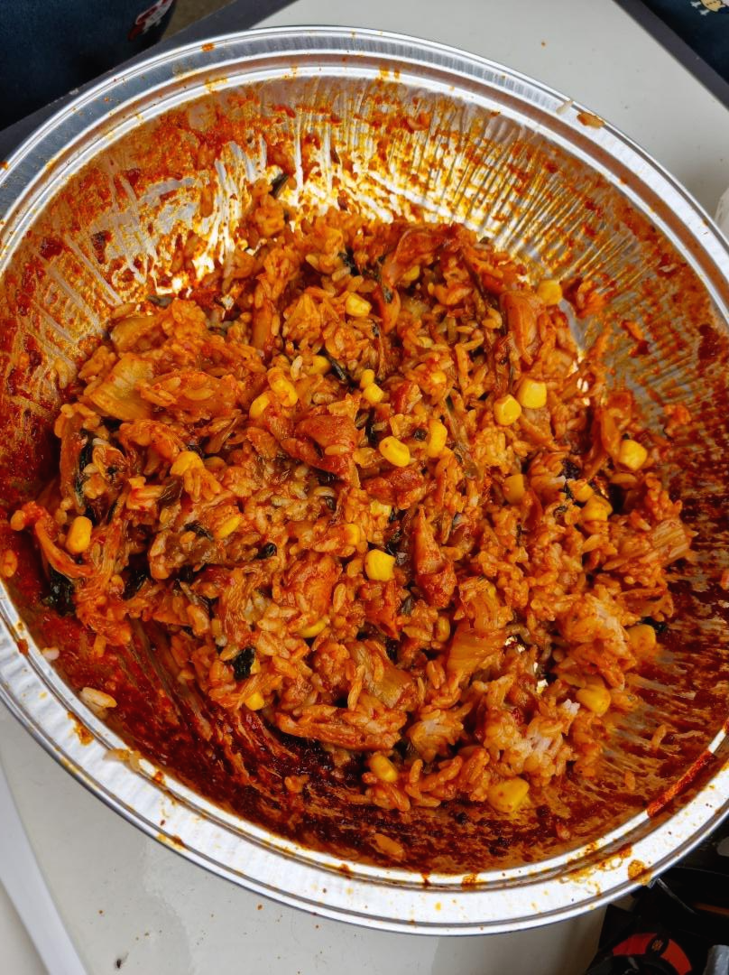 닭갈비 양념에 김치 조금 옥수수 콘 조금 넣어서