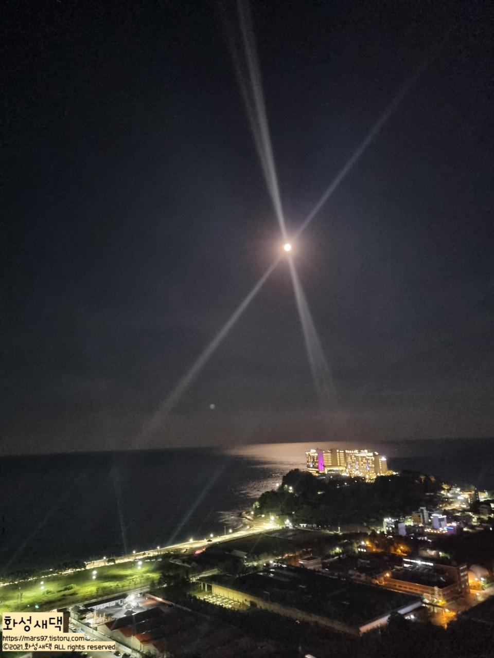 속초해수욕장도 조명을 환하게 켜놔서