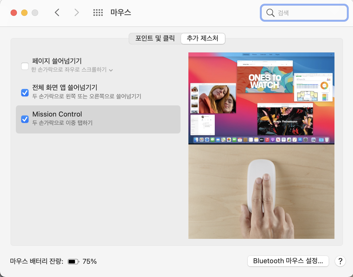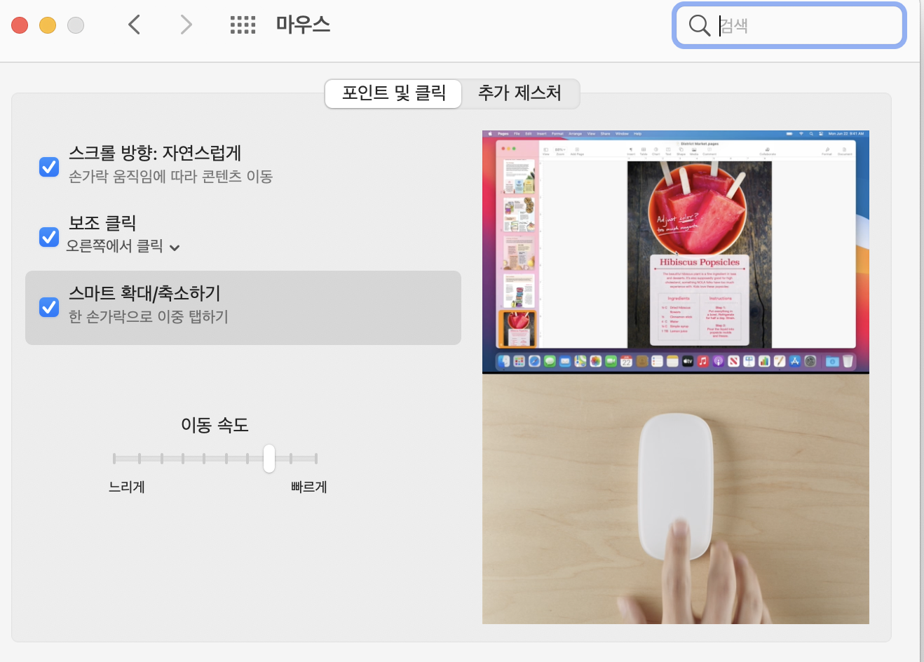 애플 마우스는 마우스 자체에서 확대, 축소 페이지 넘기기 등등 다양한 기능이 가능하니 좋더라고요