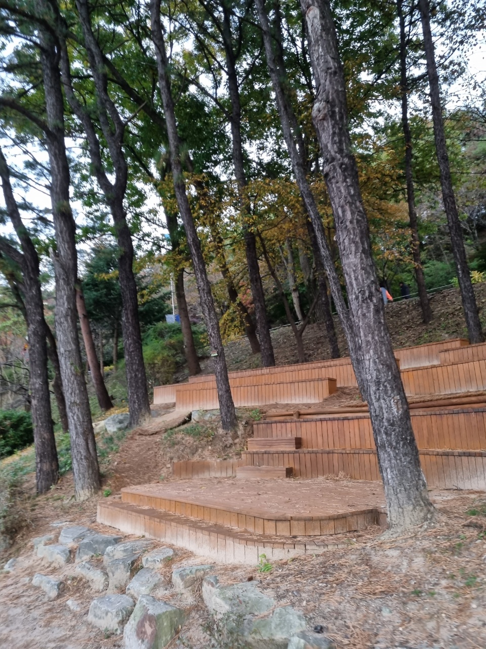 나무들 사이에 벤치와 앉을 공간이 마련되어 있어요