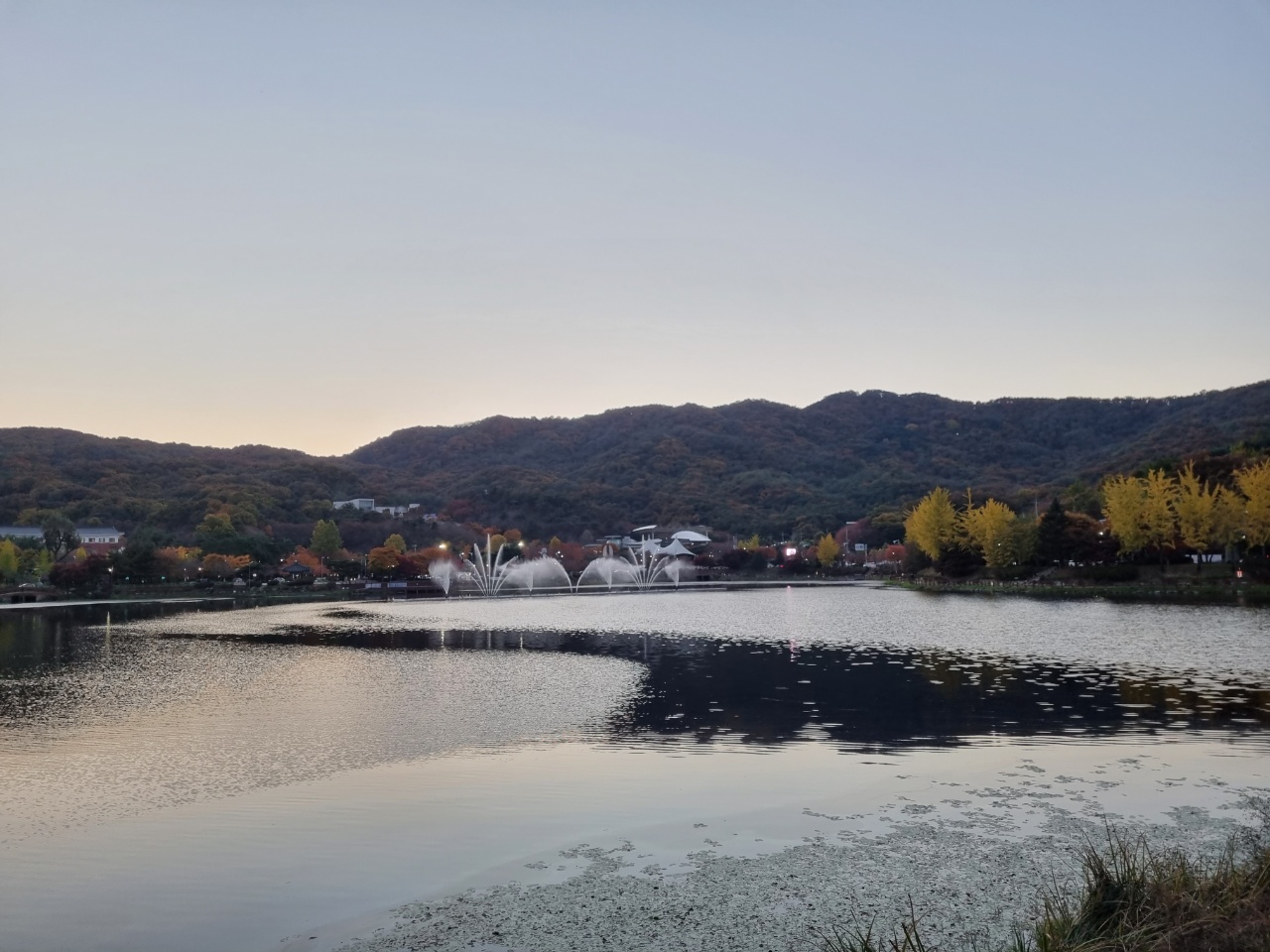 큰 호수에 분수가 나오니 멋있더라고요