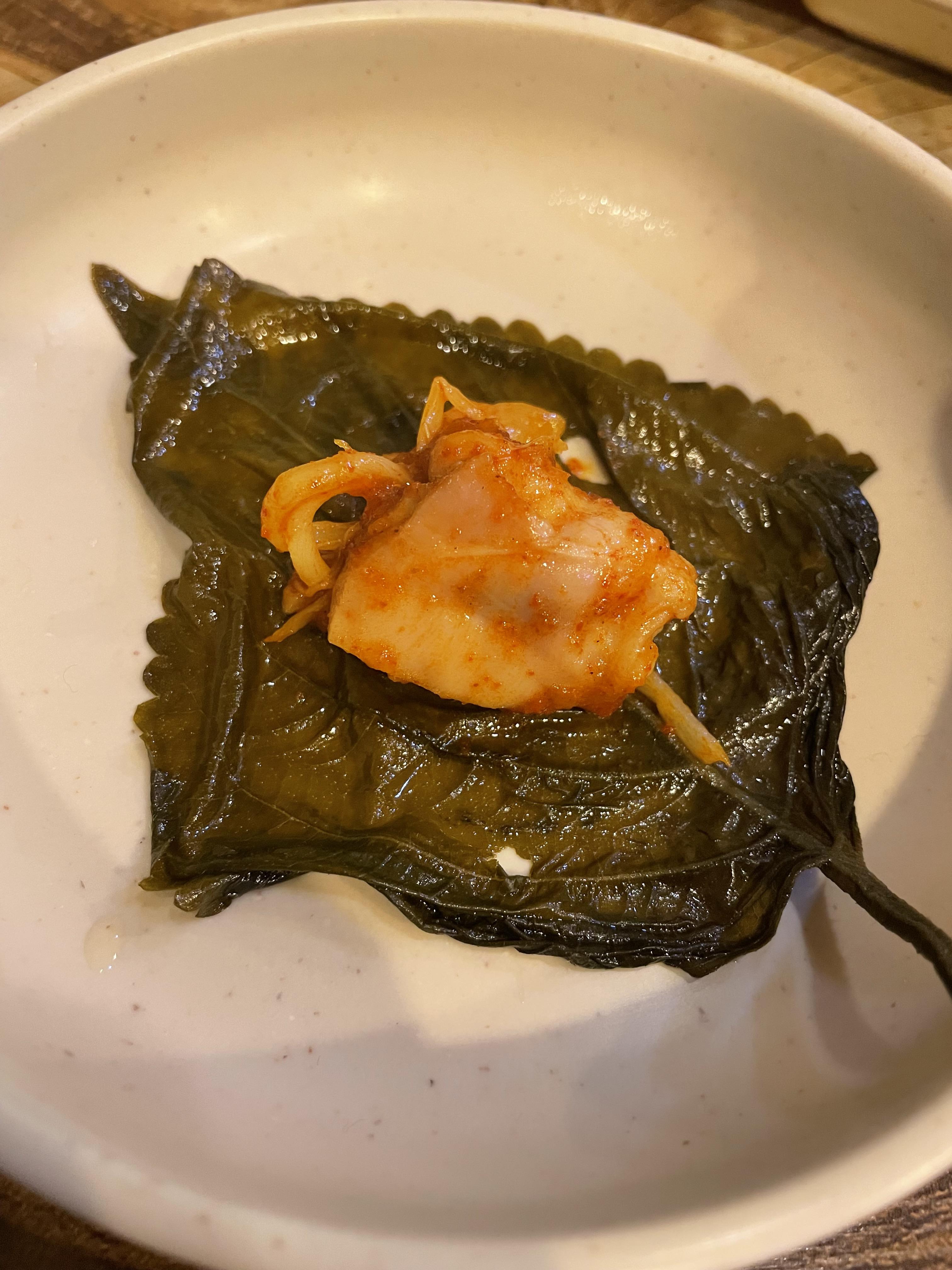 같이 나온 깻잎 절임에도 싸 먹고 상추와 무쌈에도 싸 먹었어요