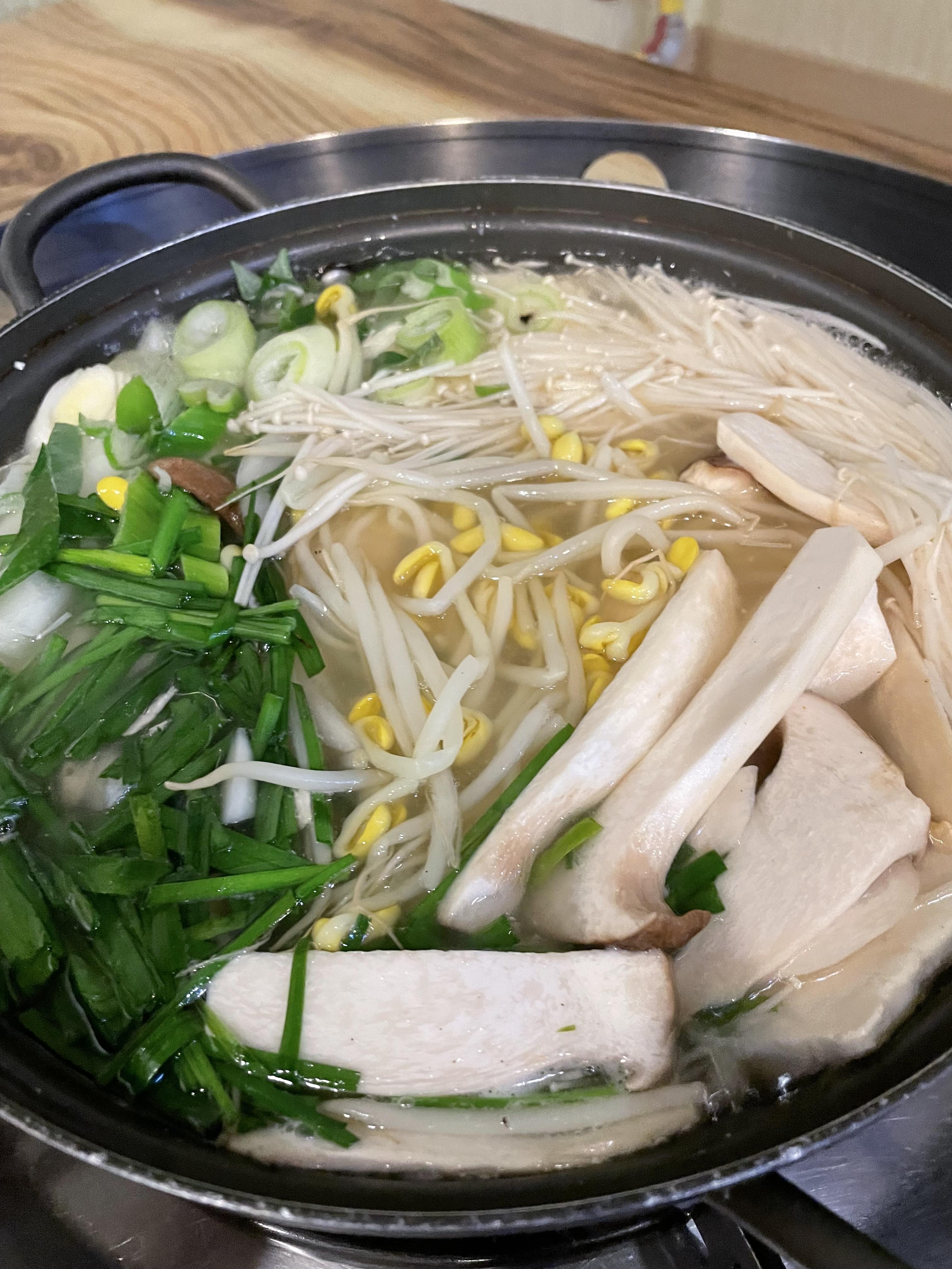 닭갈비가 마저 익을 동안 손두부 전골을 먼저 먹어 보았어요