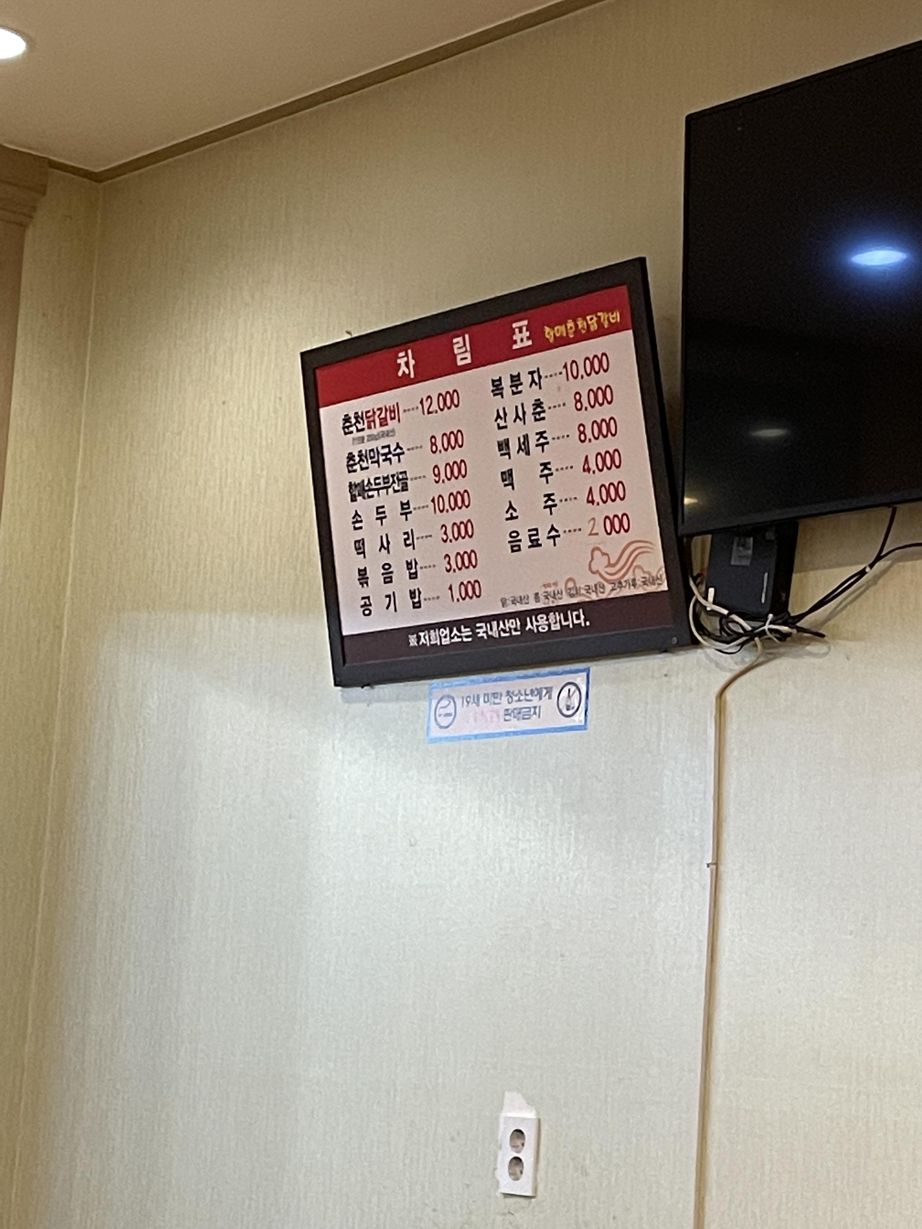 할매 춘천 닭갈비의 메뉴예요