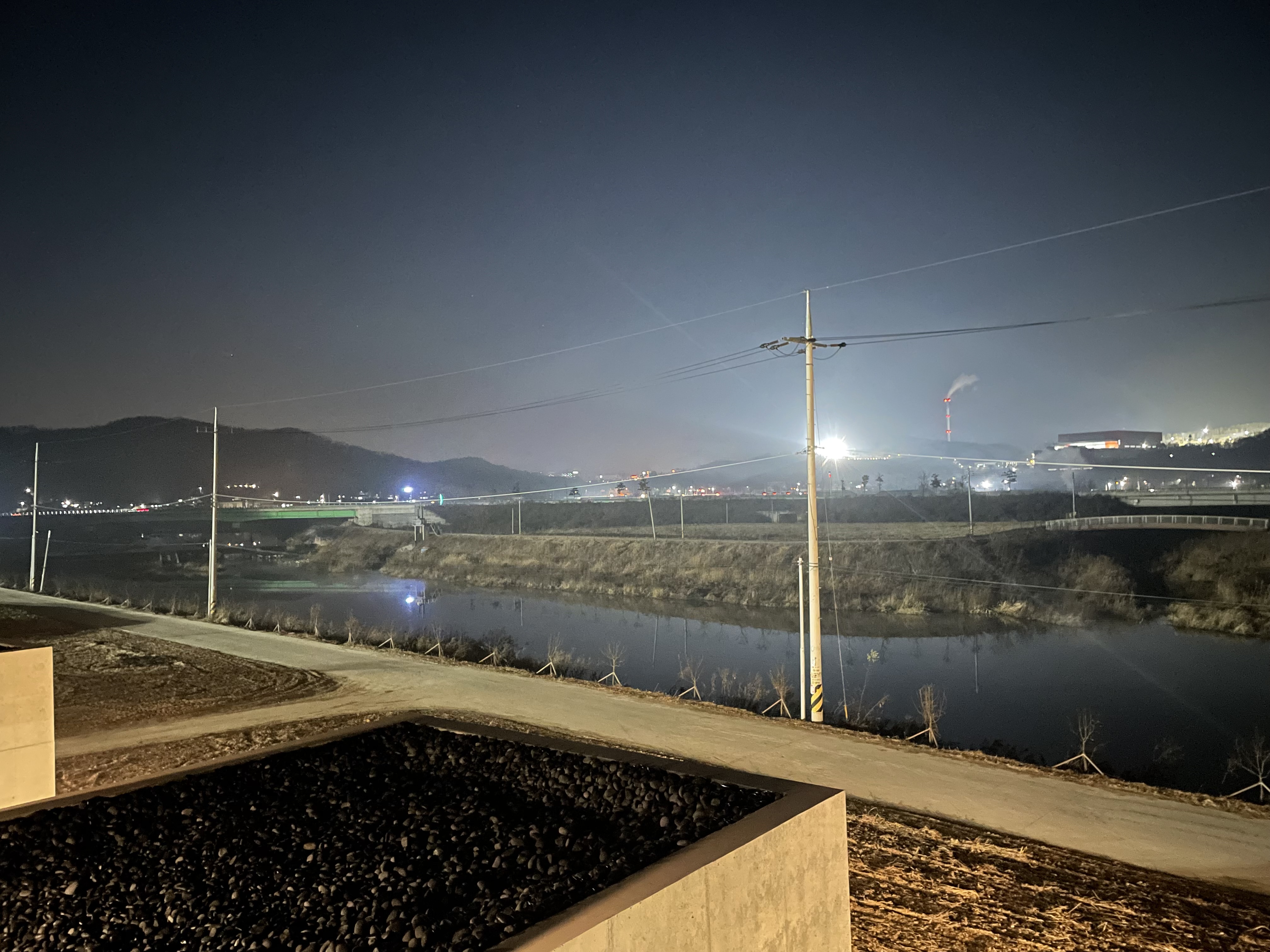 가로등 조명과 하천이 논스페이스 카페와도 잘 어울이더라고요