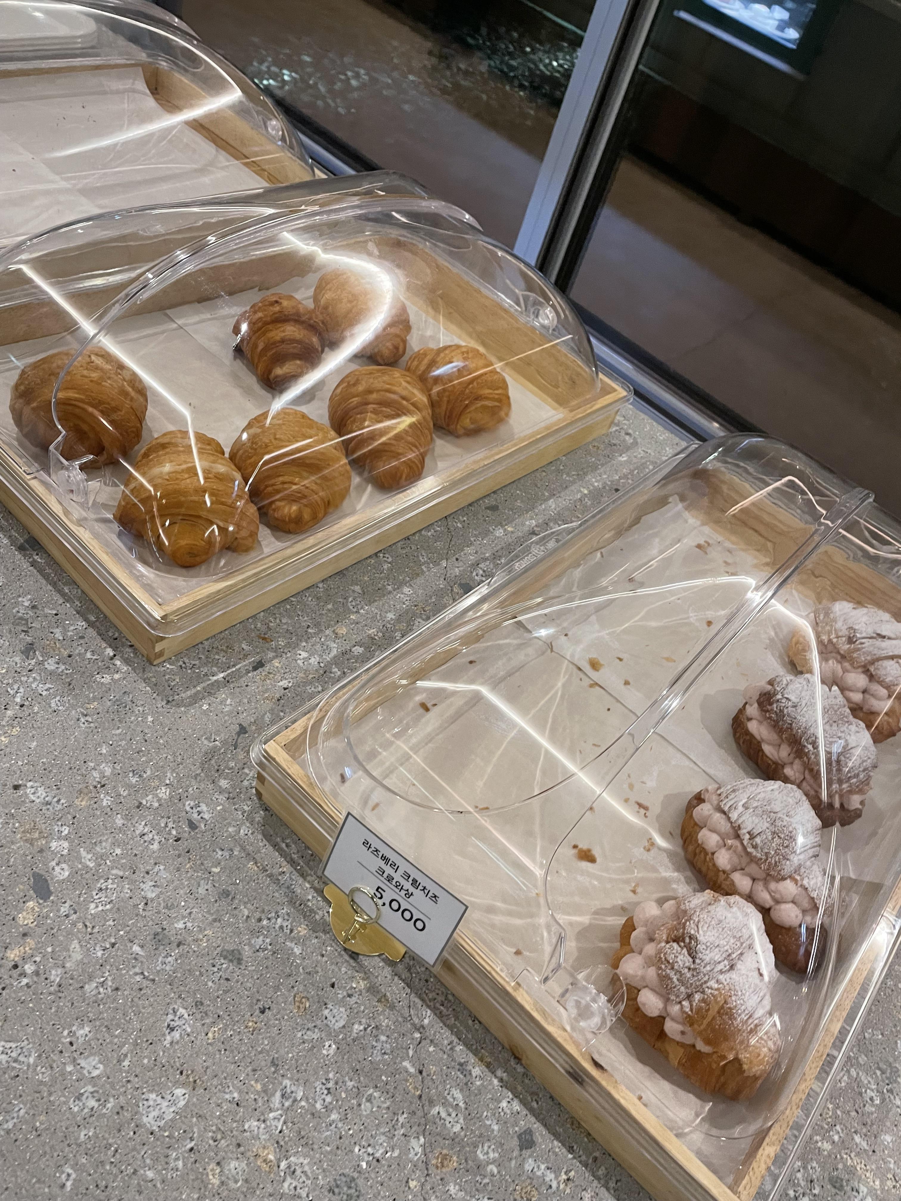 크루와상과 휘낭시에 이천쌀로 만든 당근 케이크와 치즈 케이크
