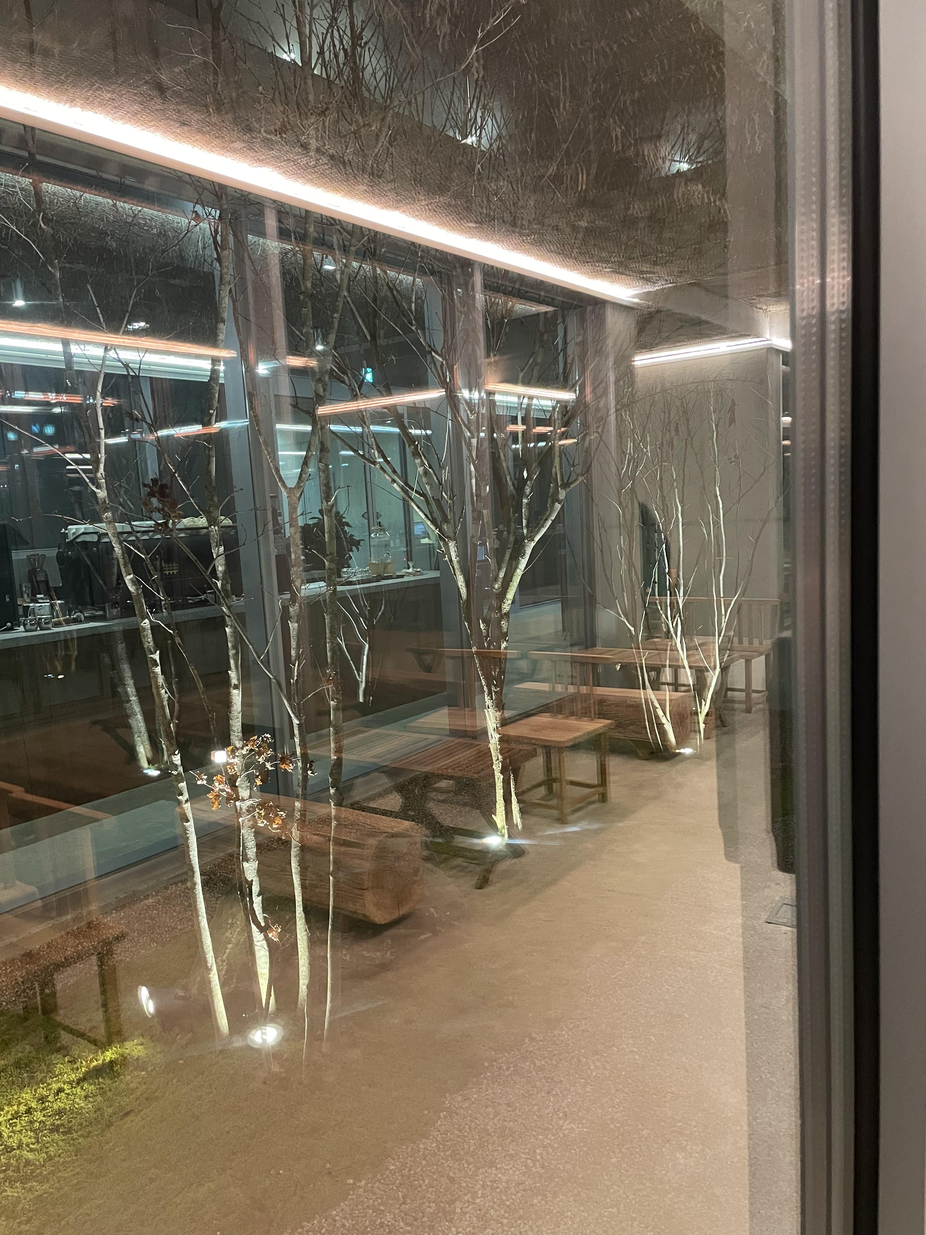 논스페이스 카페의 특징은 한쪽 벽면이 거의 다 통유리로 되어 있다는 거예요