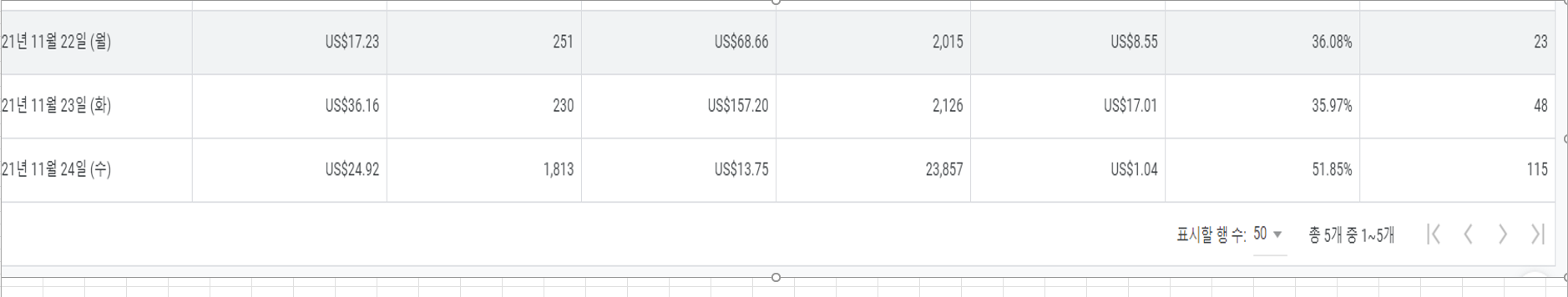 애드센스는 23일 클릭수 48, 24일 클릭수 115. 광고 클릭수가 훨씬 많았는데도
