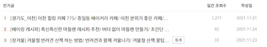기타 유입이 거의 다 다음이었고 인기글의 순위도 바뀌어 있더라고요ㅎㅎ