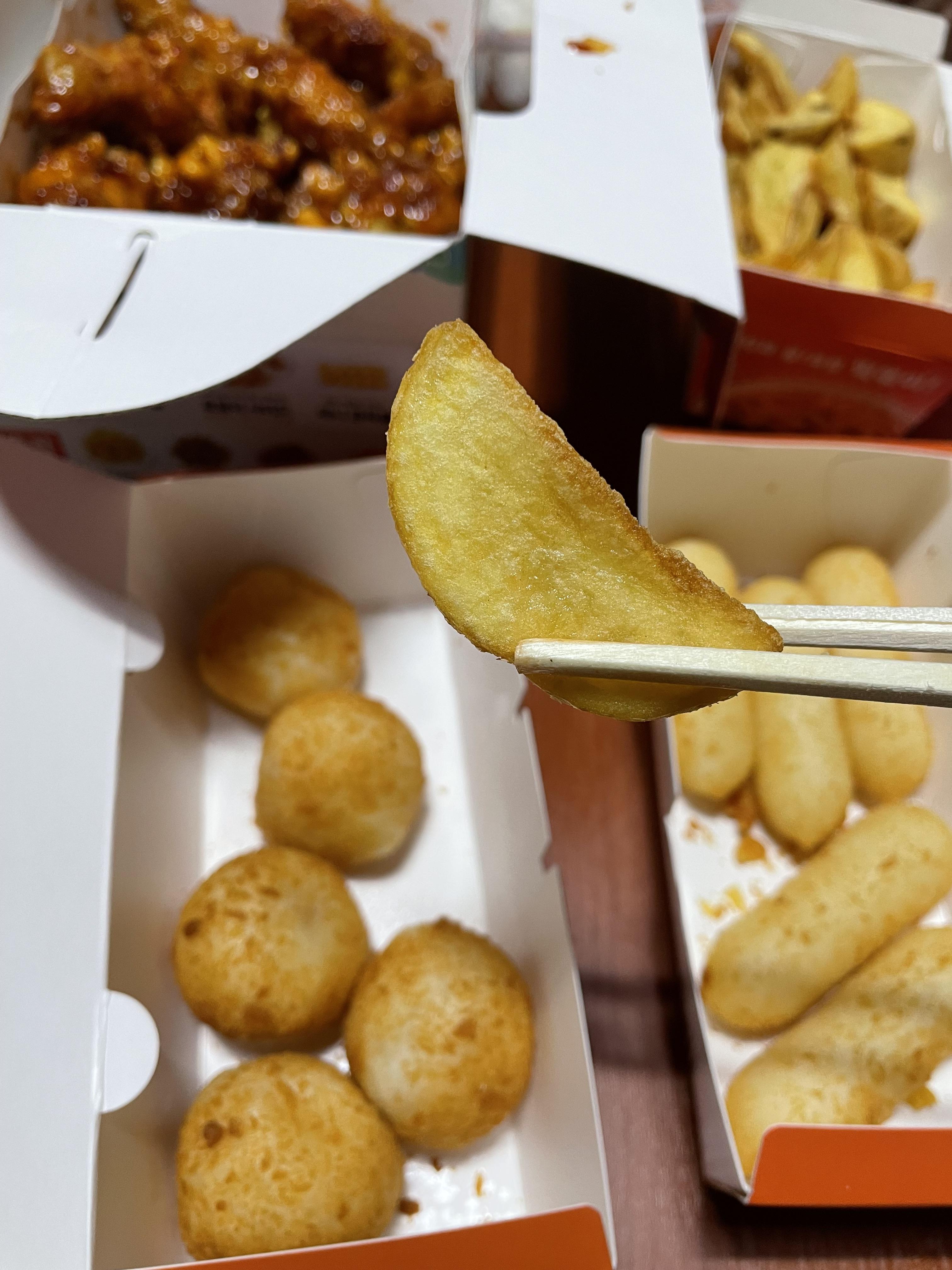 치킨에도 웨지 감자가 들어 있어요