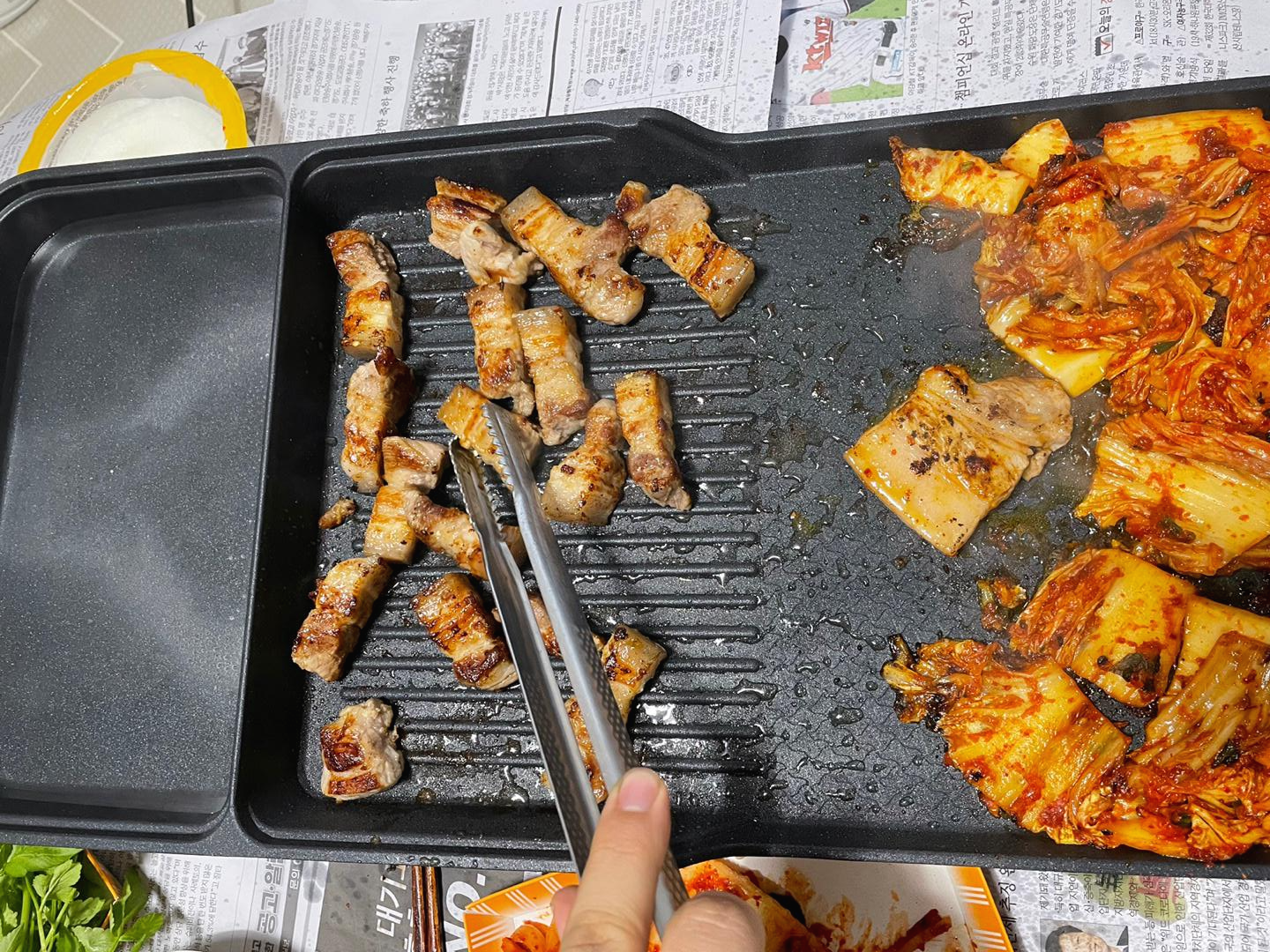 남편님이 좋아하는 김치도 같이 구웠어요
