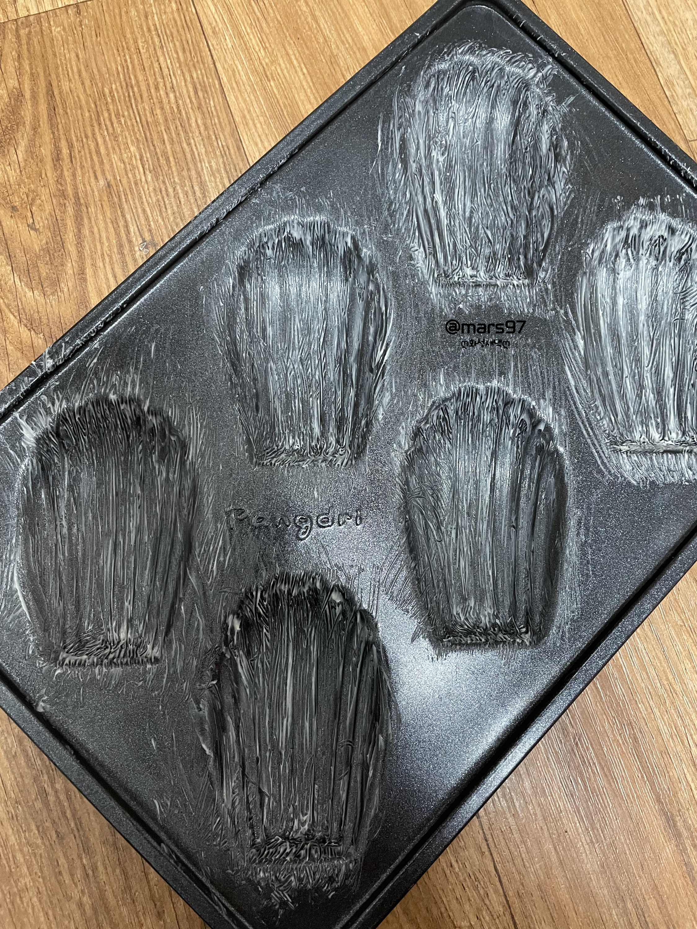 마들렌 팬에는 버터를 미리 발라 주었어요