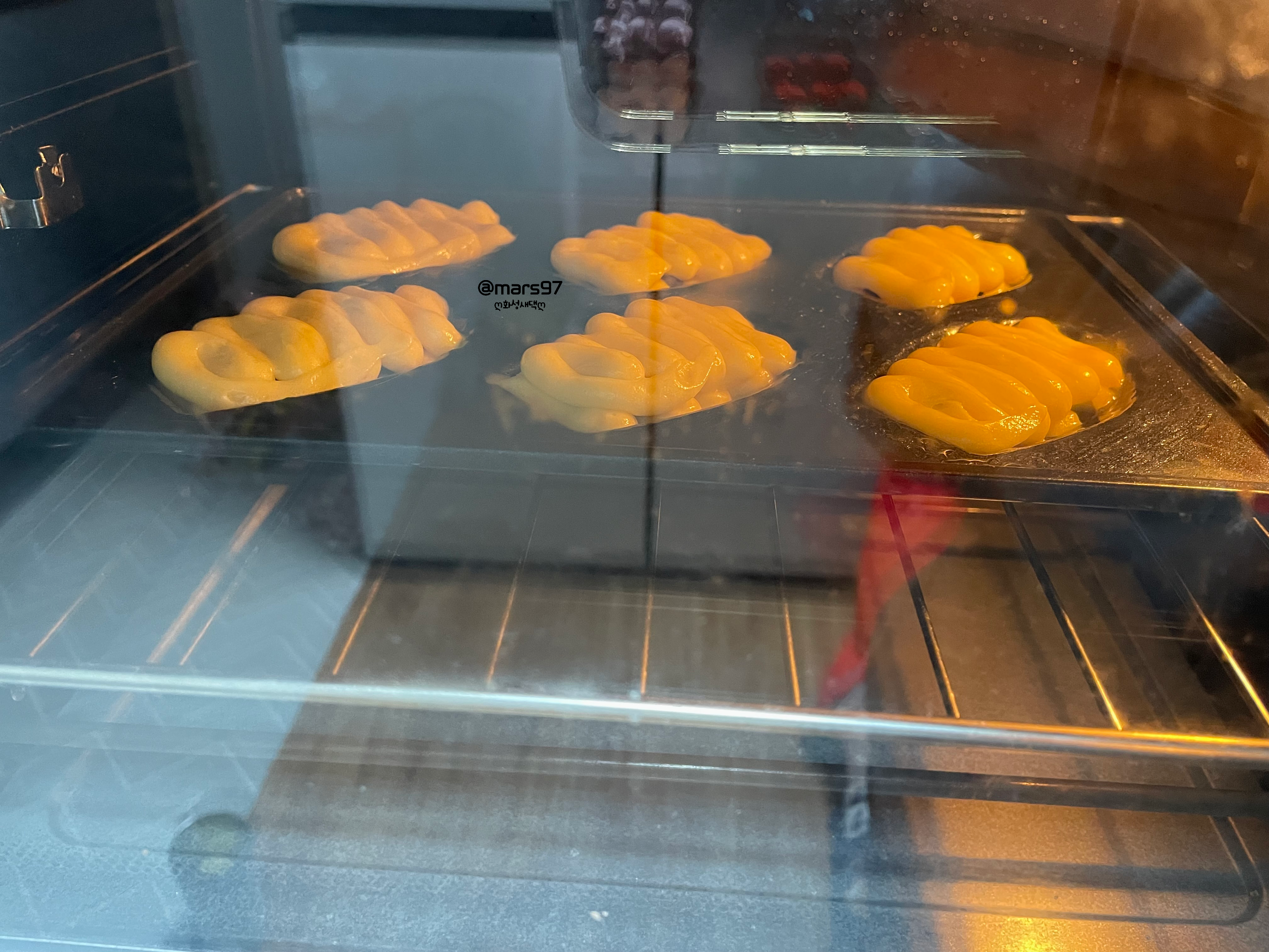 머핀 틀에 약 80% 정도만 짜주면 돼요