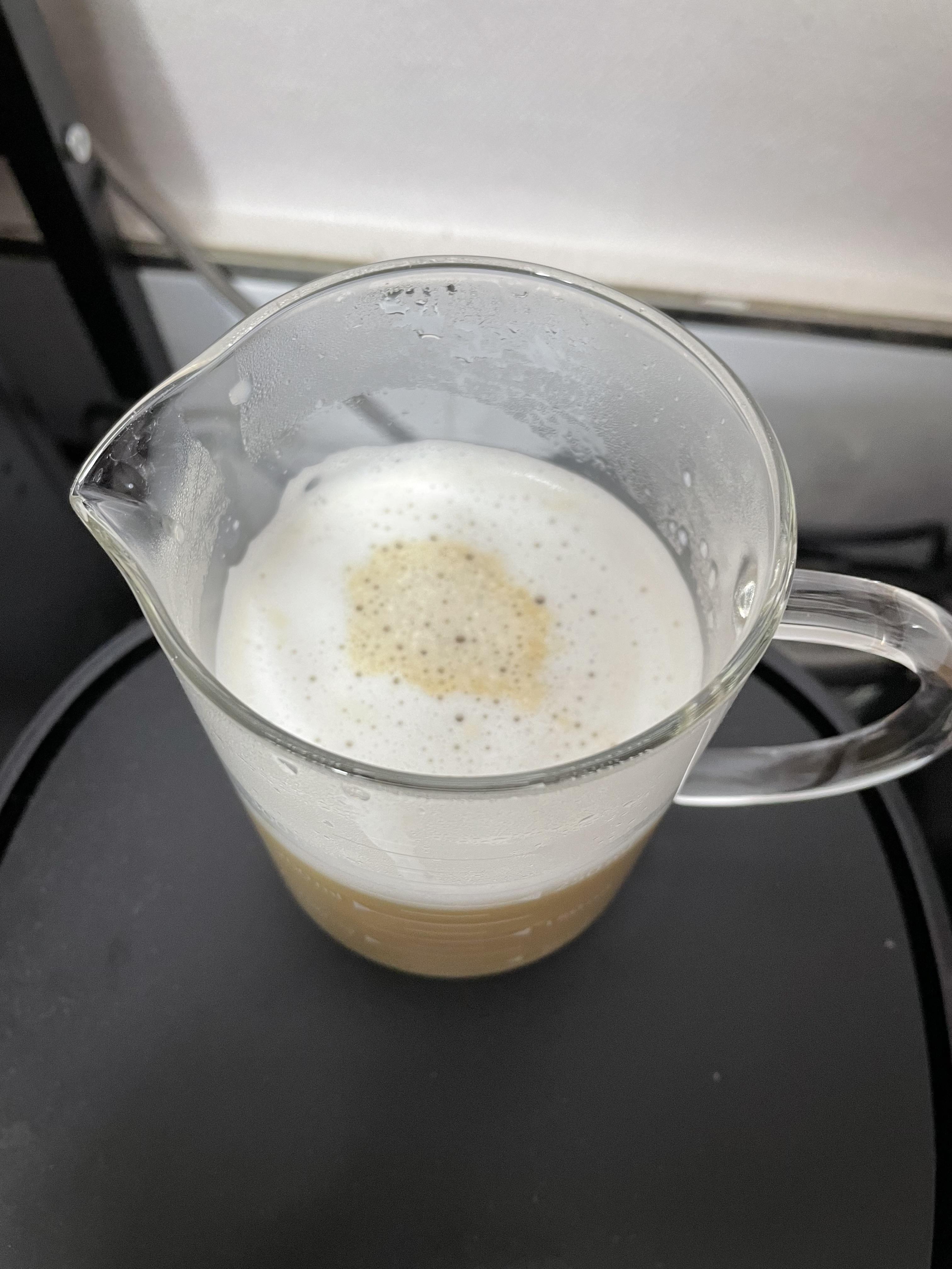 카라멜 시럽을 넣어준 컵에 부어주면 돼요