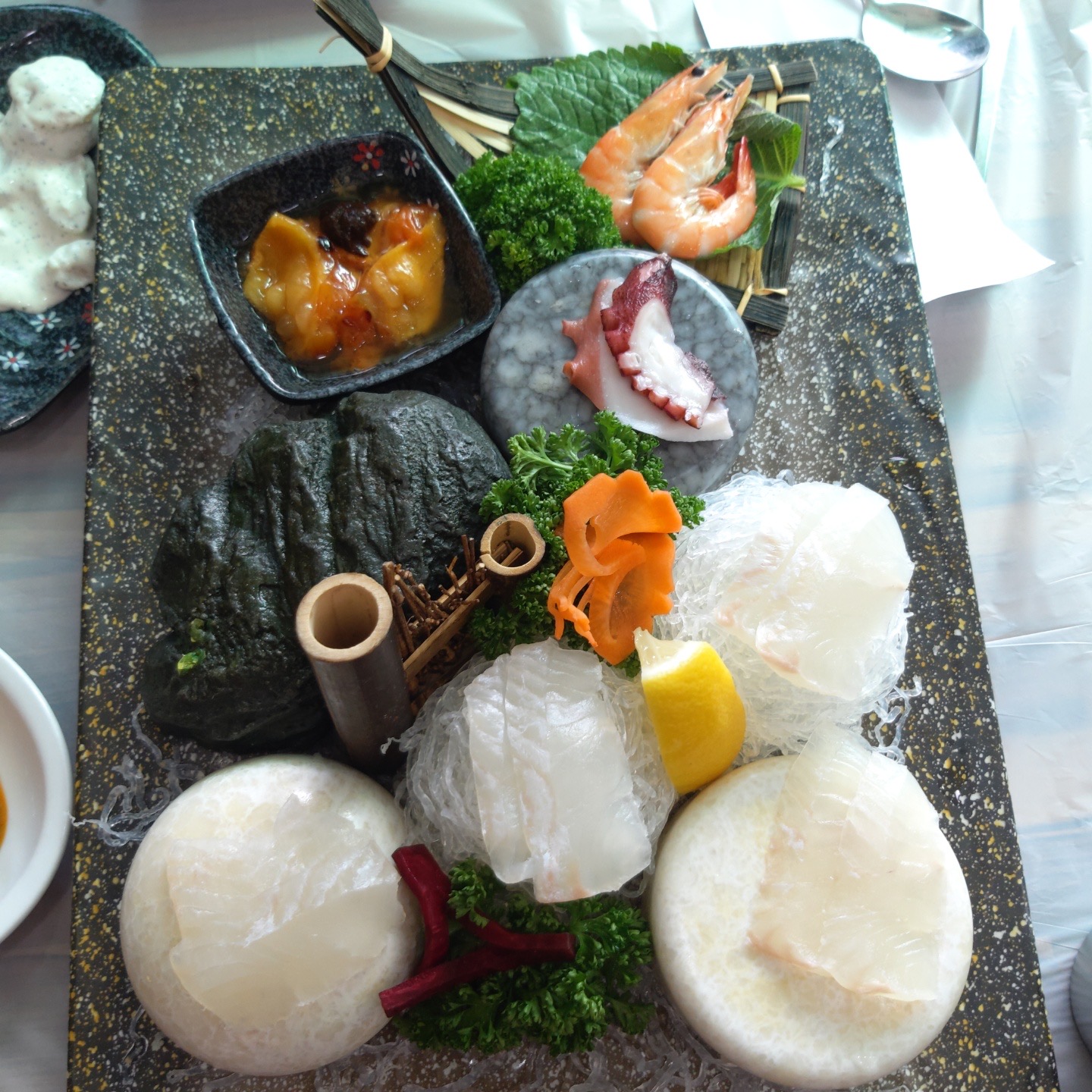 간단한 밑반찬과 함께 나온 회