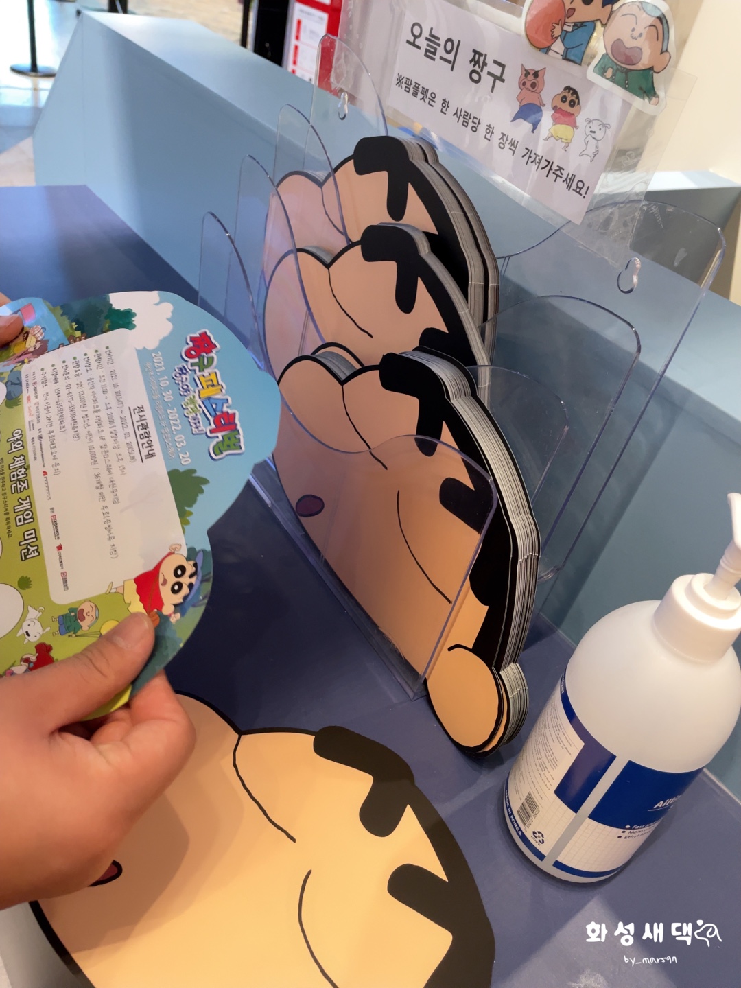 입장 전, 귀여운 짱구 얼굴을 들고 들어 갑니다