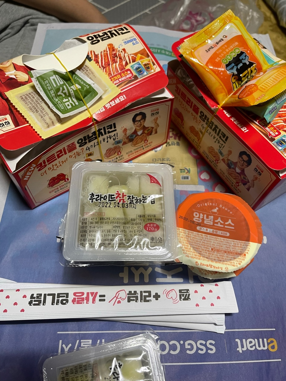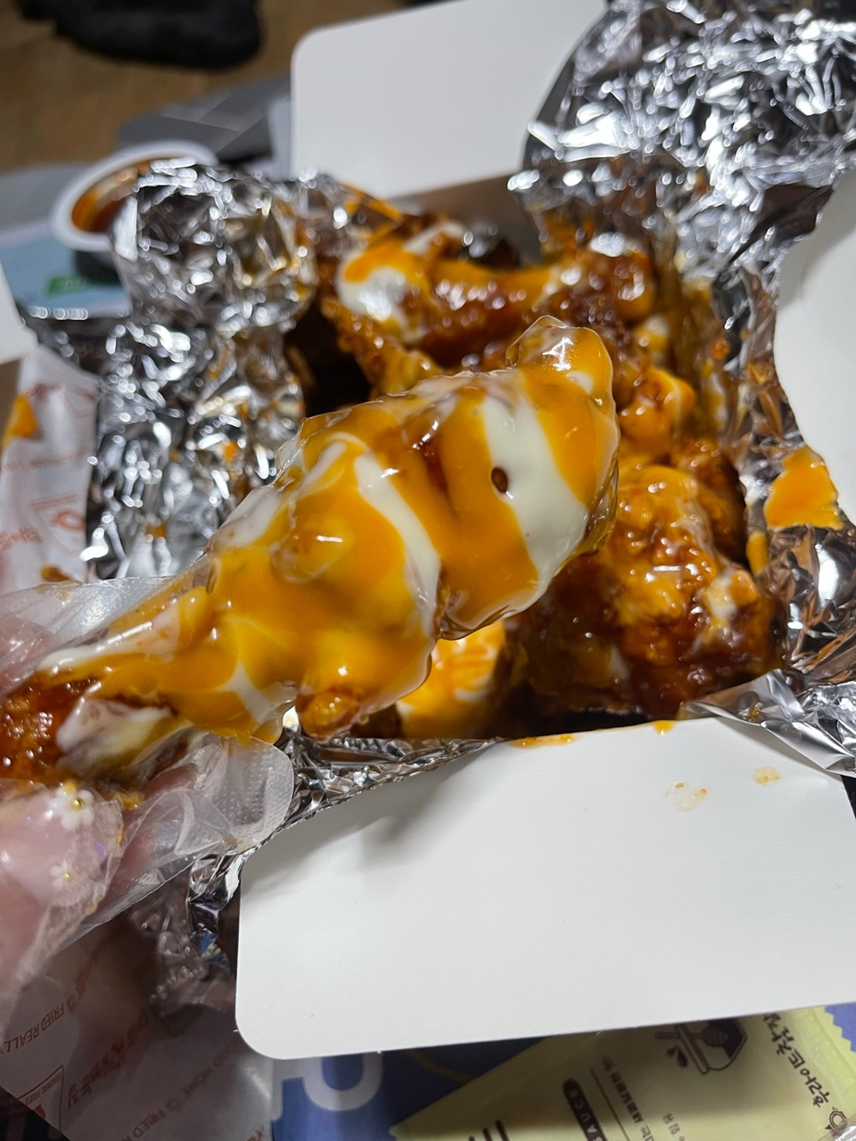 추가로 양념 치킨도 소스 뿌려서 맛있게 먹길래 반반 주문했어요