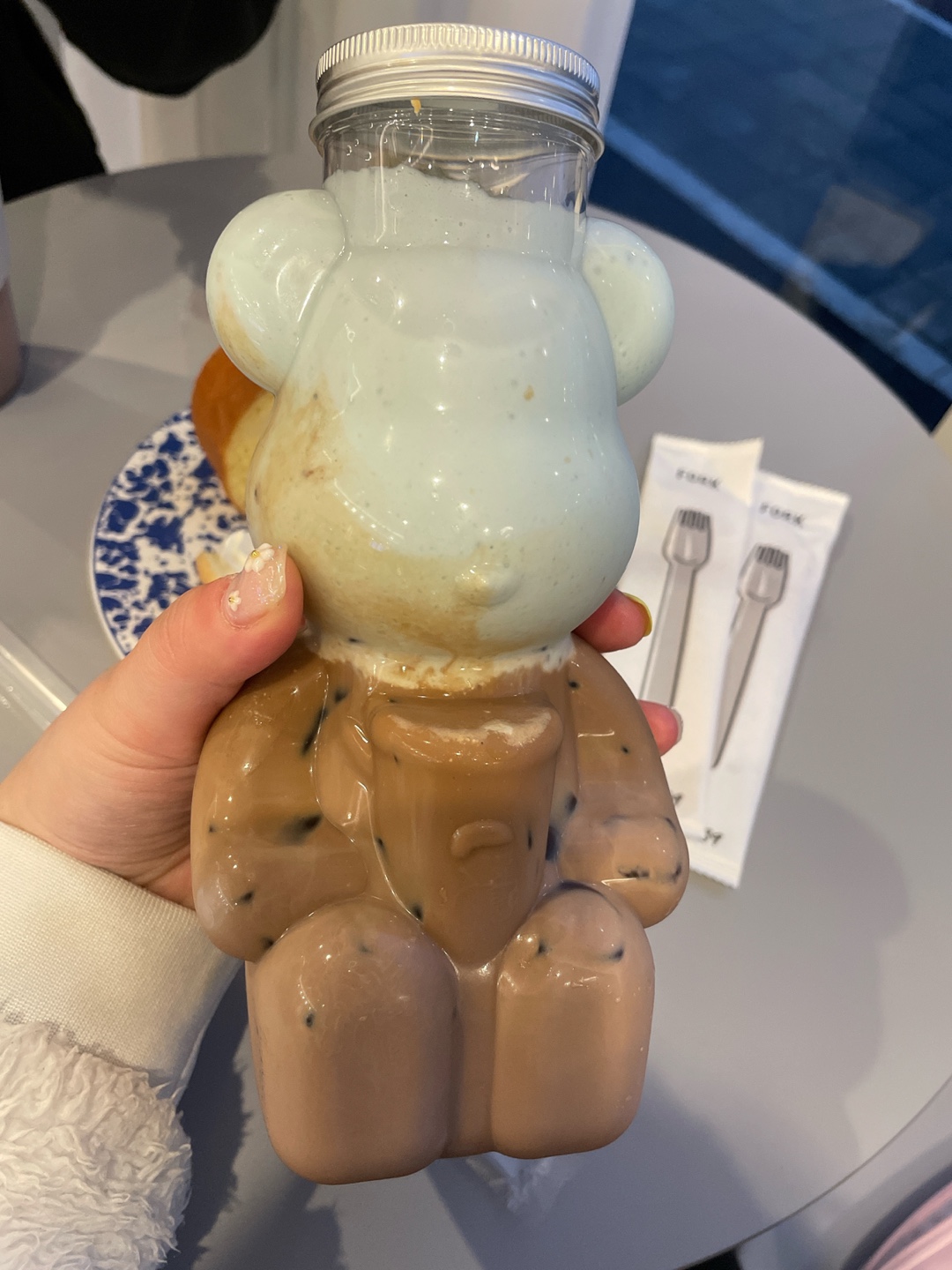 민트 아인 슈페너는 1,000원 추가해서 곰돌이 텀블러로 변경했어요