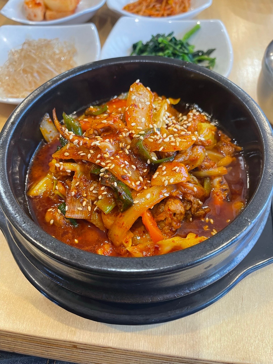 오삼불고기 뚝배기와 묵은지 돼지 김치찌개로 주문했어요