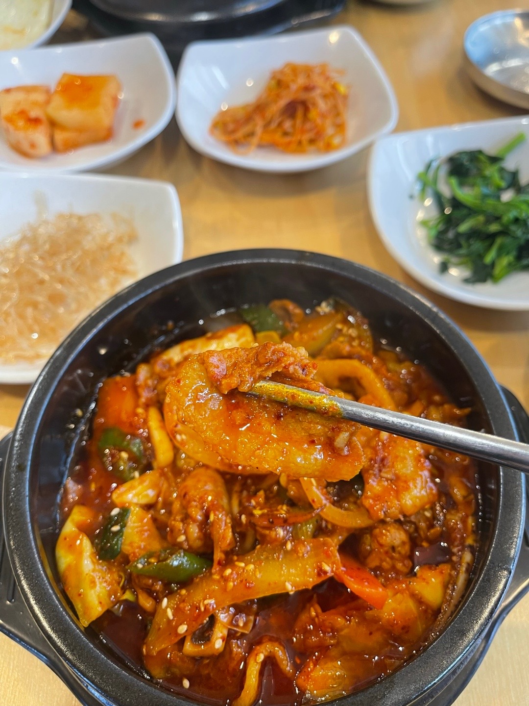 고기랑 오징어도 많이 들어 있고 매콤한 게 맛있더라고요