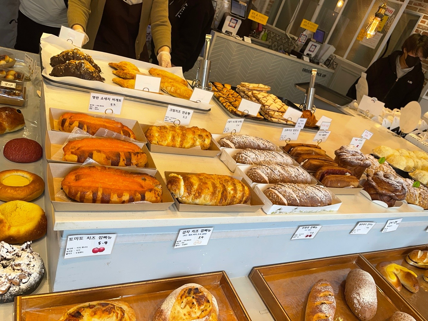 마늘빵과 레겐스 부르거 빵, 찹쌀도넛, 연인의 빵과 샬라 망드 크림치즈 케이크까지