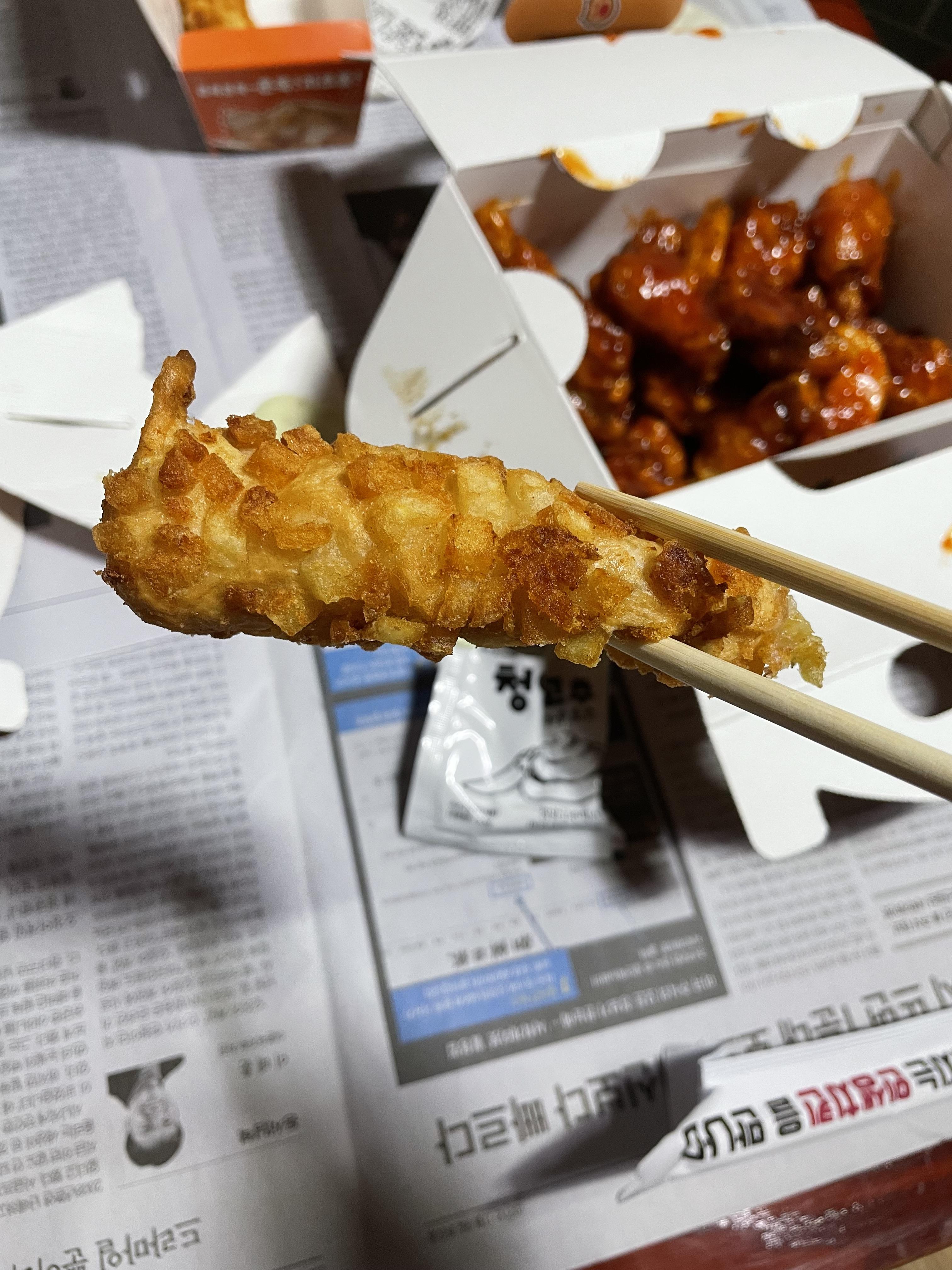 양념이 많이 묻어 있는데도 튀김은 바삭했어요