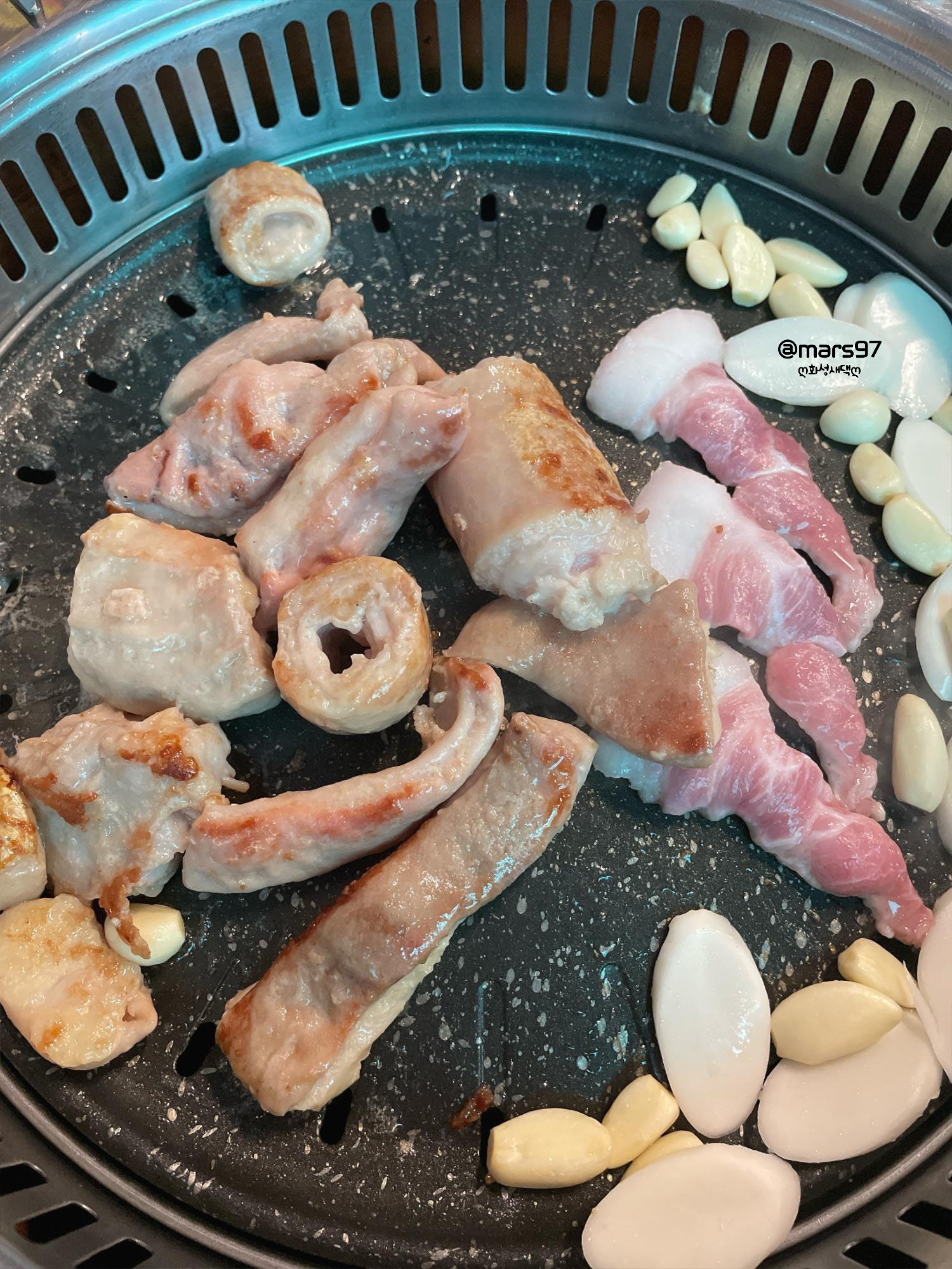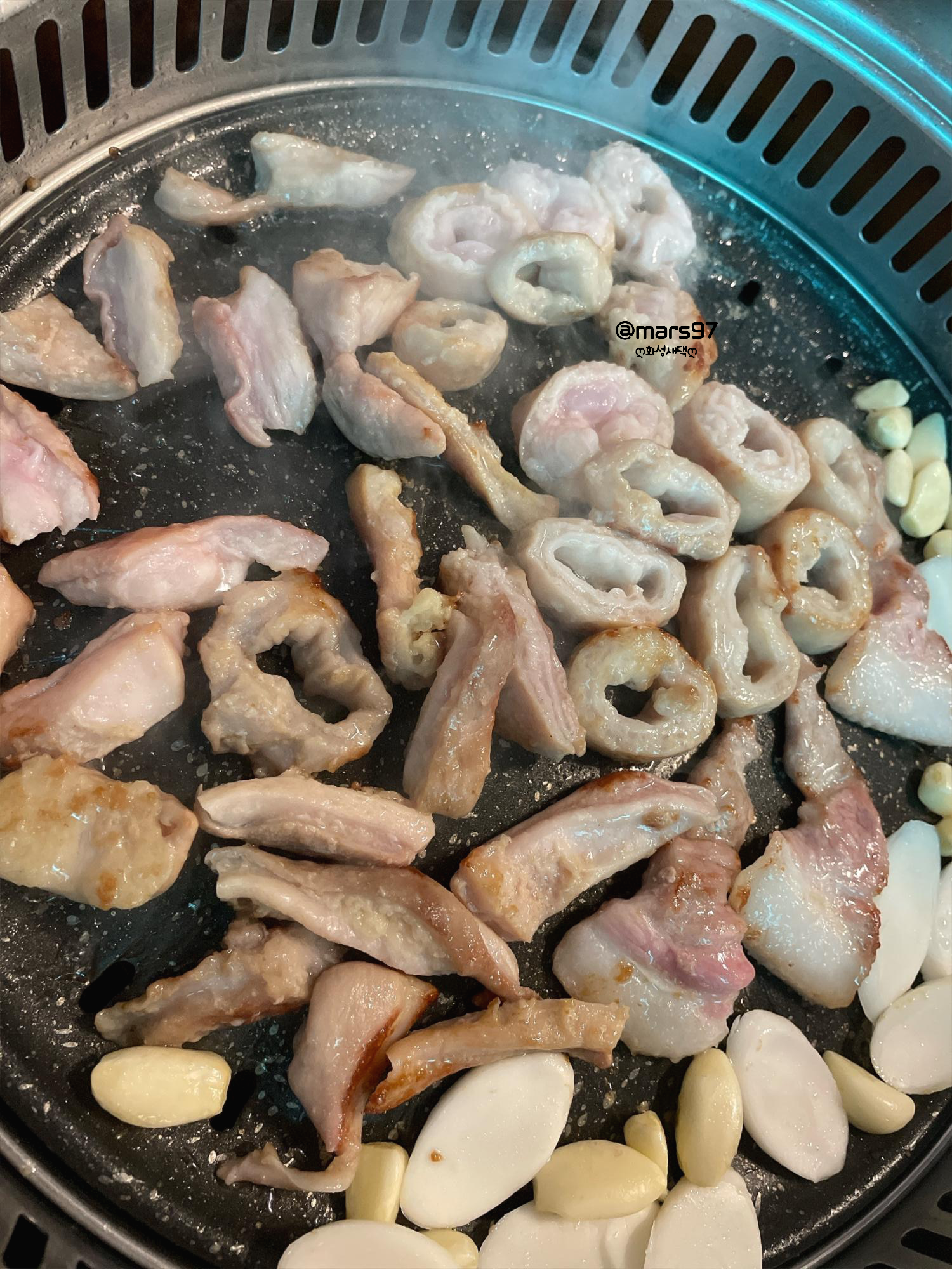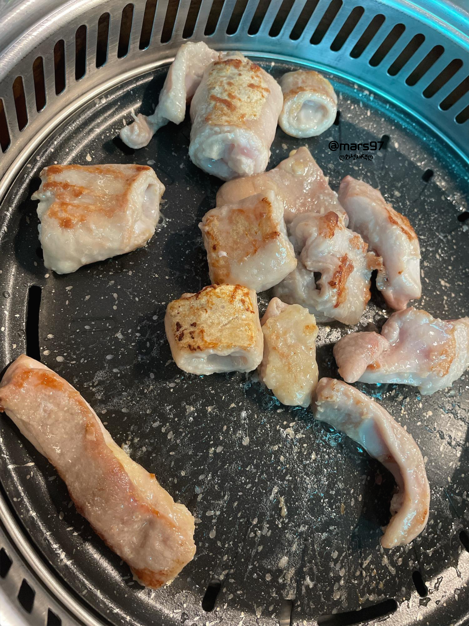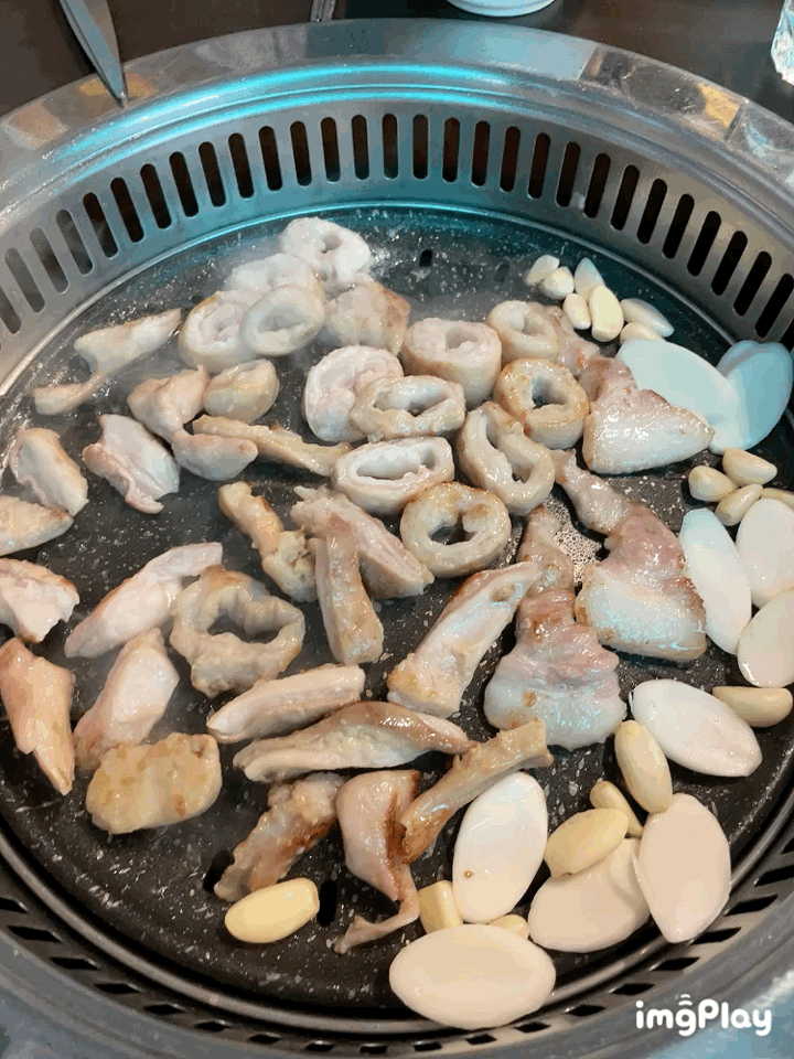맛있게 익어가는 막창과 덜미살