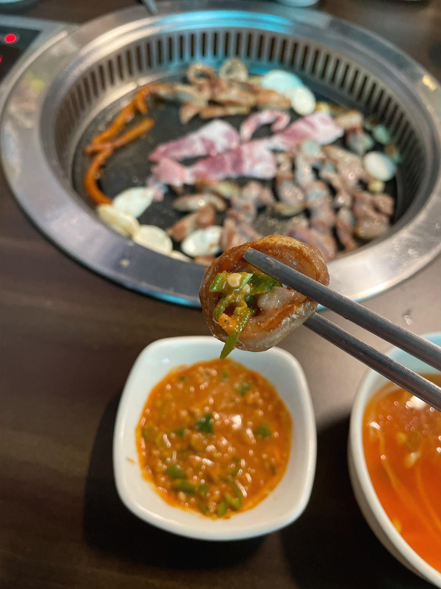 먼저 덜미살을 쌈장에 찍어 먹어 봤어요