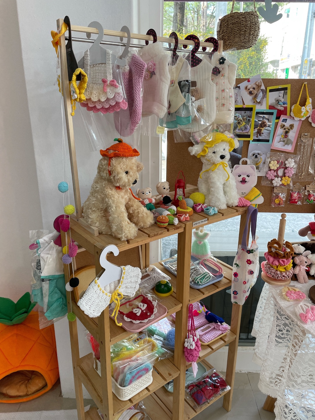반대편에는 반려견 옷과 용품, 작은 액세서리 등등