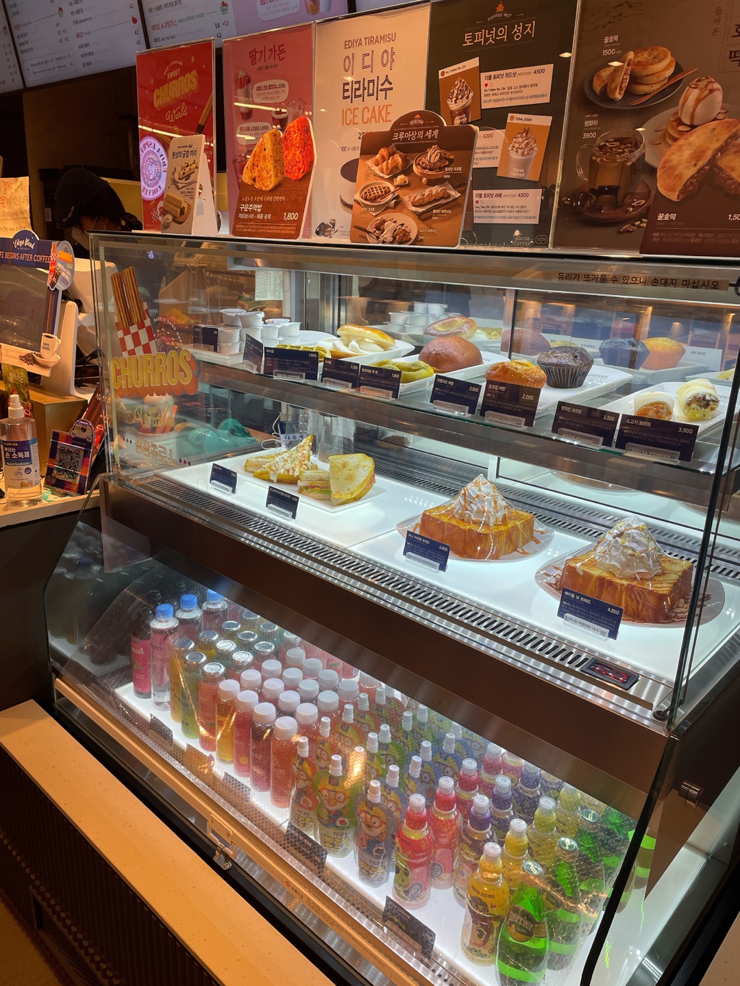 쇼케이스 안에는 와플과 허니브레드 머핀 등등