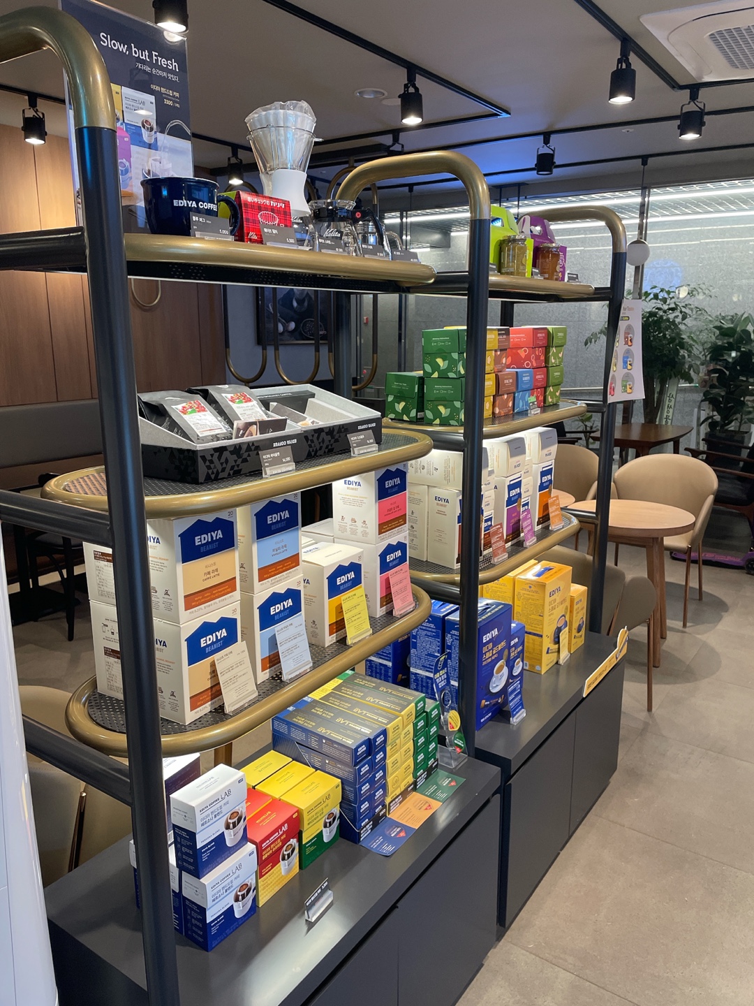 반대편에는 이디야 캡슐 커피와 원두와 같은 별도로 구매 가능한 상품들이 있어요