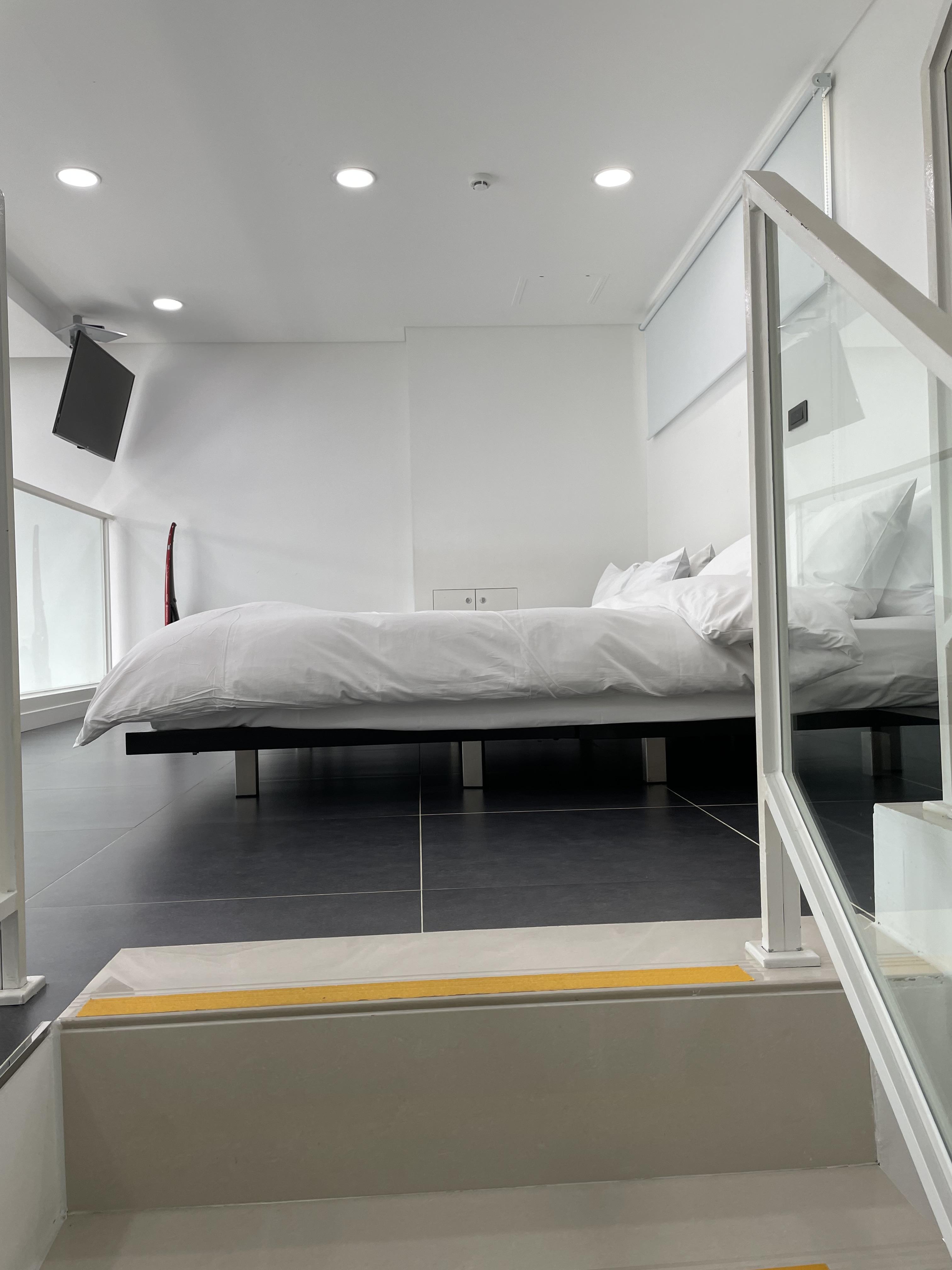 창문이 2층 높이 끝까지 있어서 위에 있어도 답답하지 않고 좋았어요
