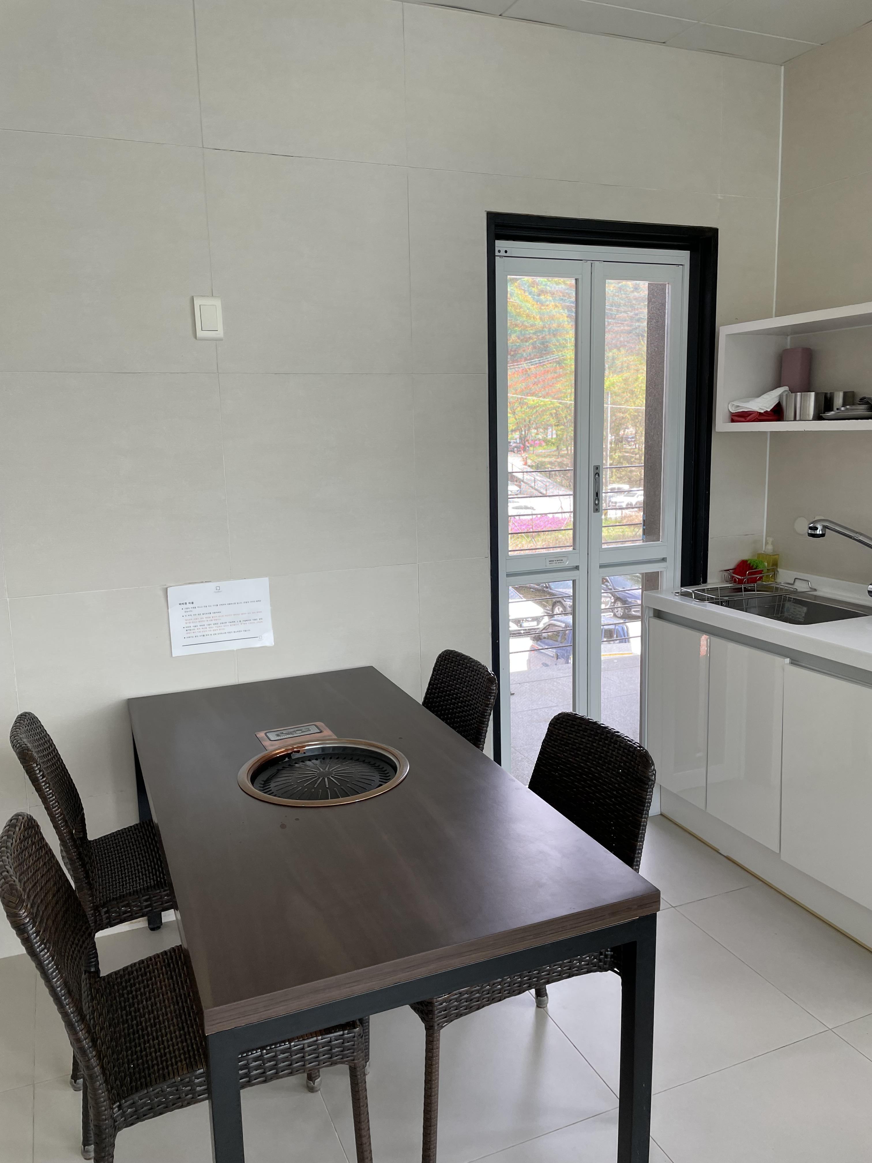 더 대박인 건 수영장 뒤편으로 바로 고기 구워 먹을 수 있는 공간이 있어요