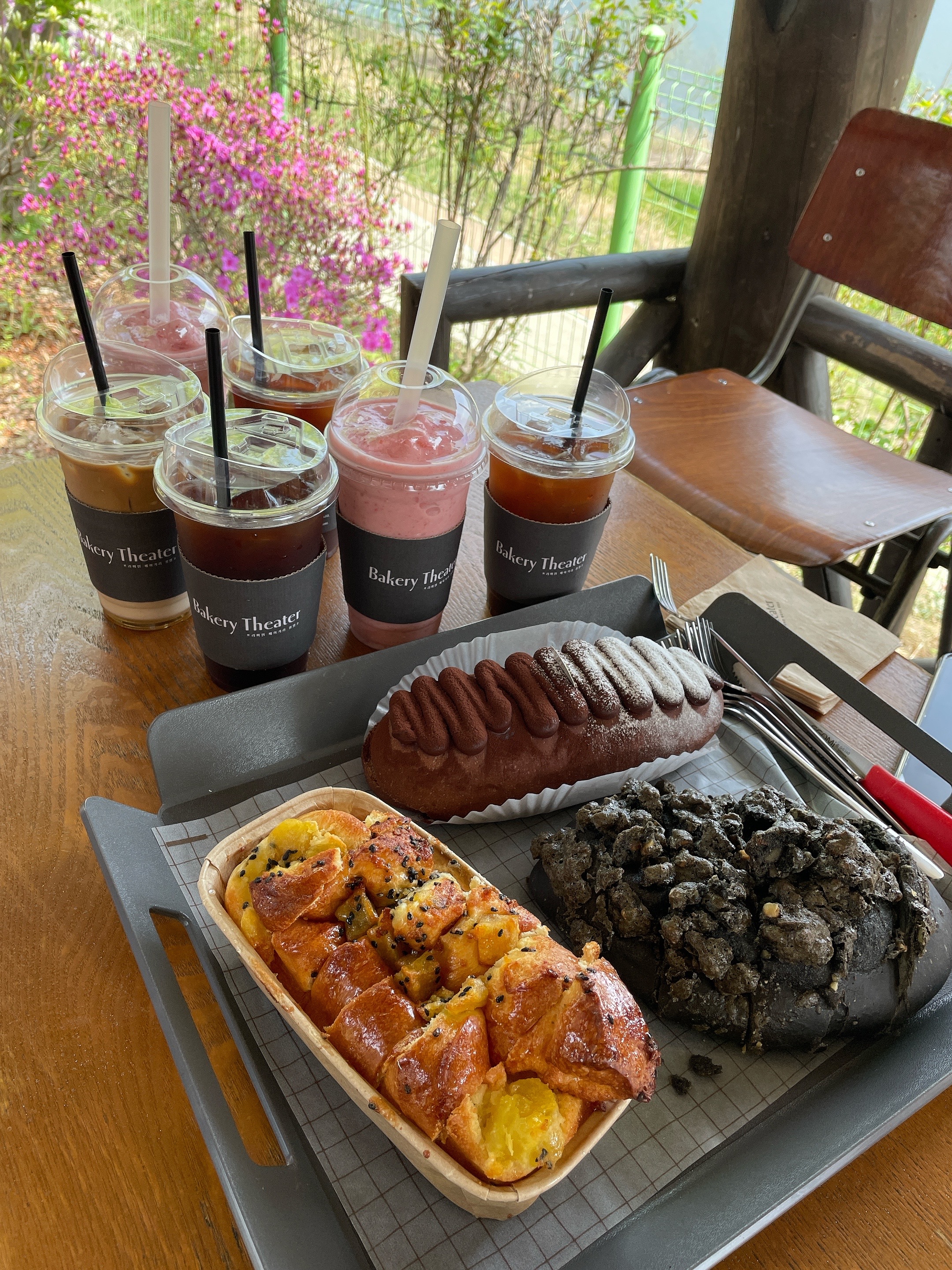 주문한 빵과 음료를 가지고 자리로 돌아왔어요