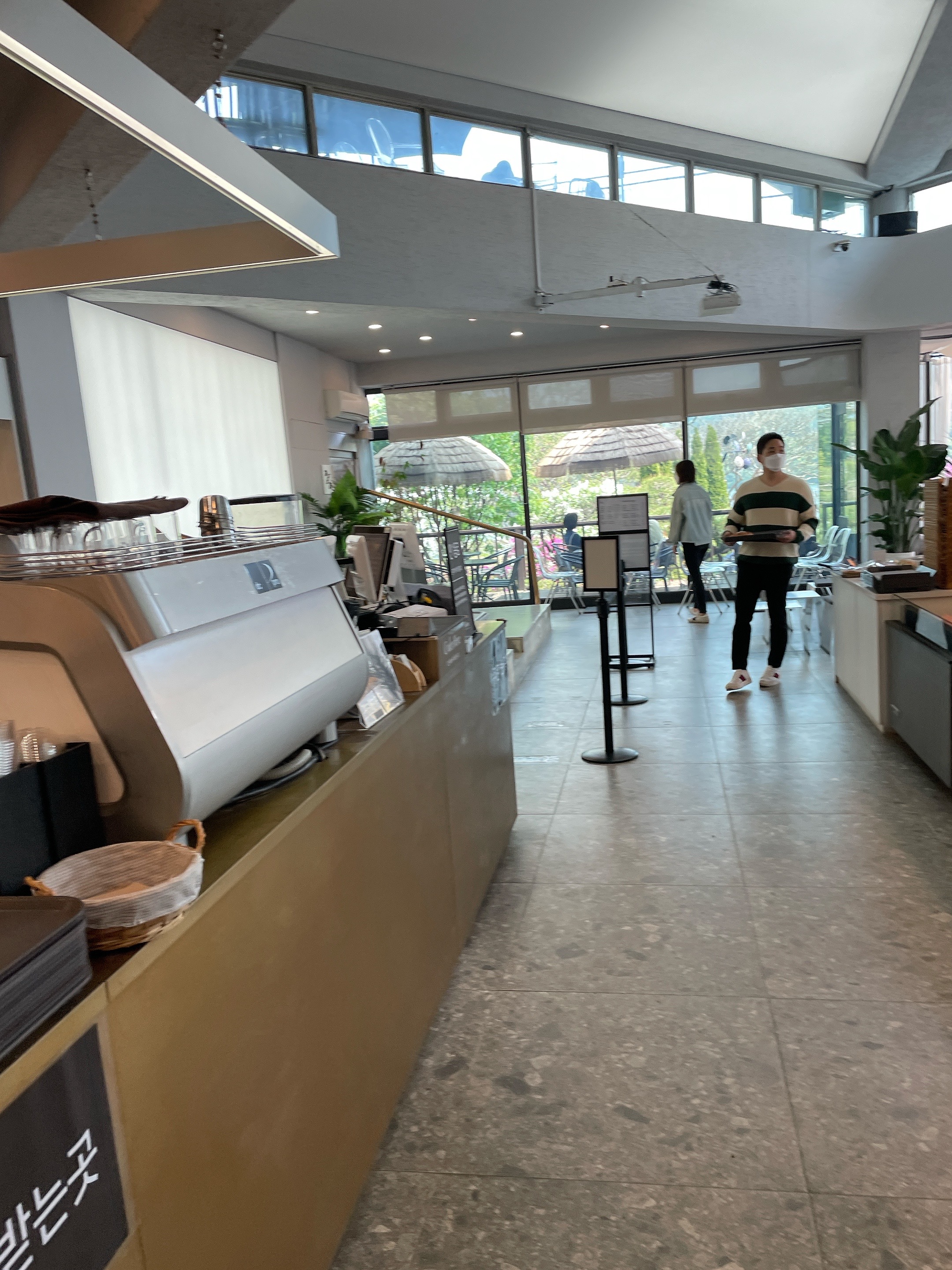 자리 맡은 곳이 카페 건물과는 거리가 있어