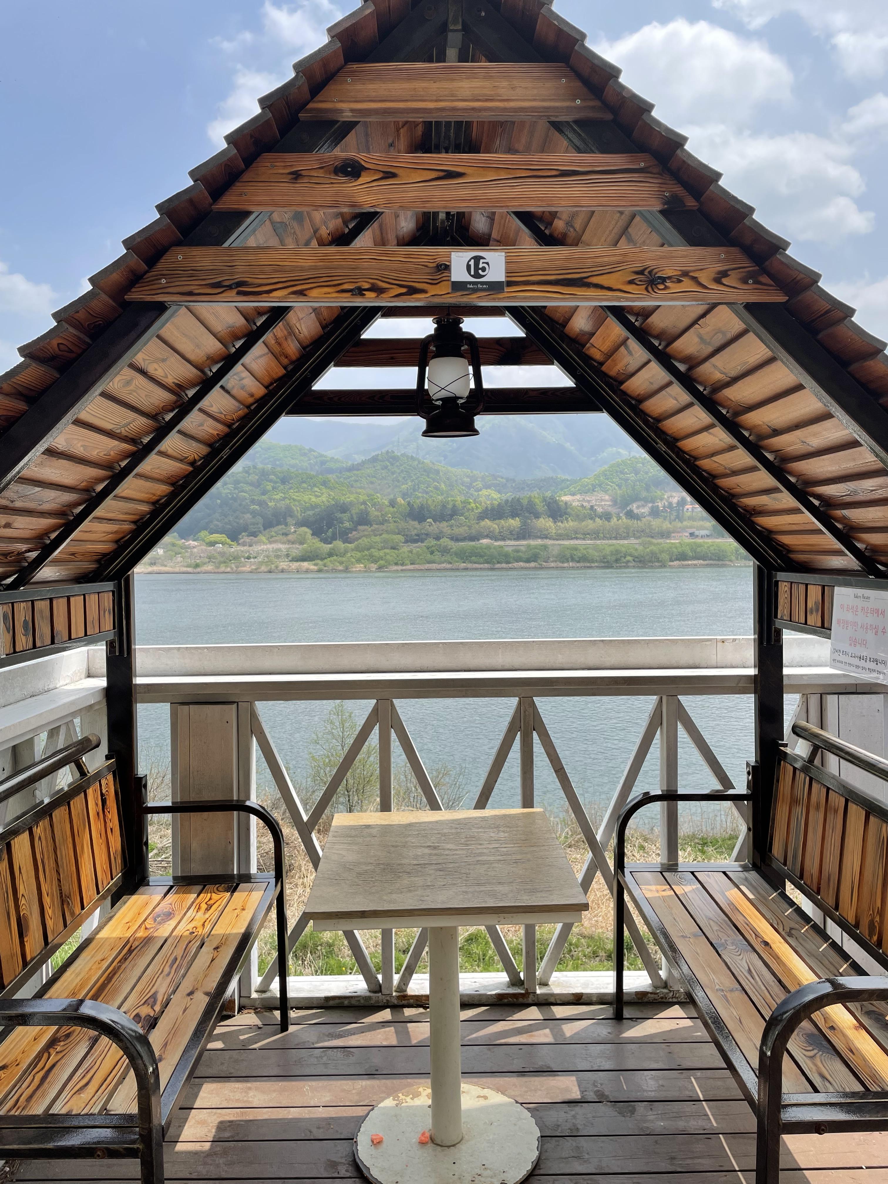 다행히 옆쪽에 있는 원두막이 바로 비어서 자리를 옮겼어요