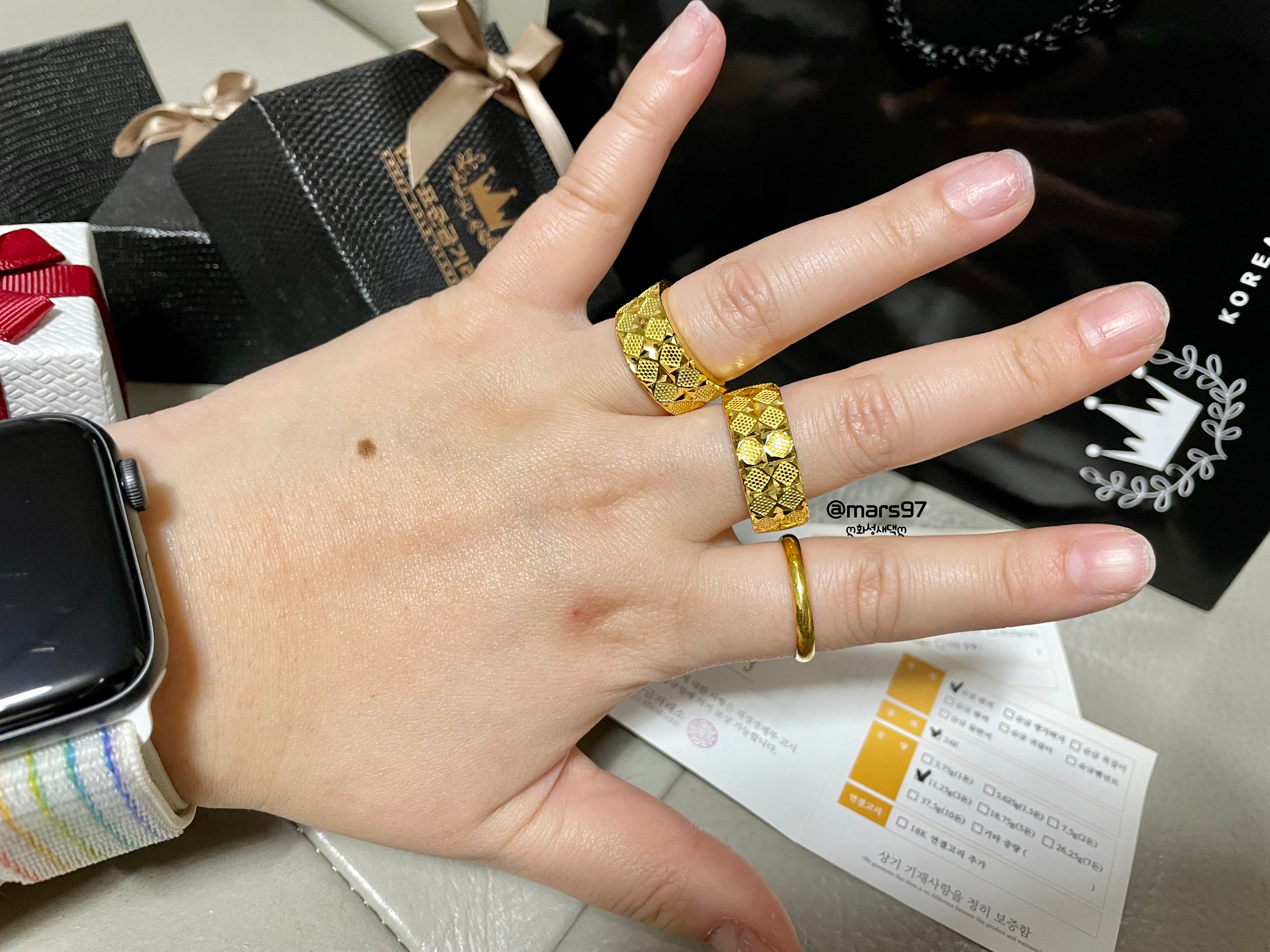 같은 3돈인데 남편님은 손가락이 굵어서 제 거보다는 얇게 나왔어요