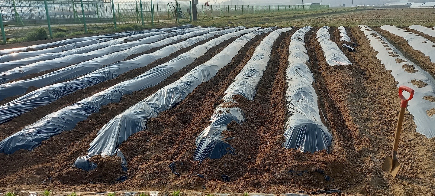 아버님께서 지인분의 도움을 받아 미리 밭을 갈고 비닐을 씌워 놓으셨어요