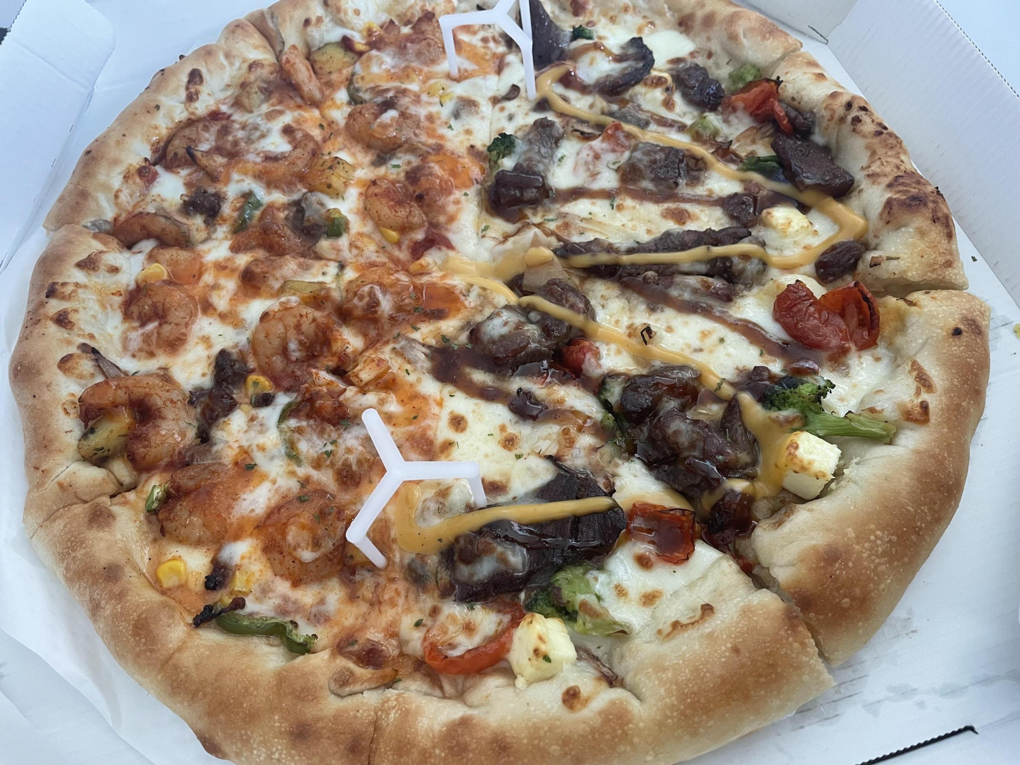 립 스테이크& 쉬림프 피자예요