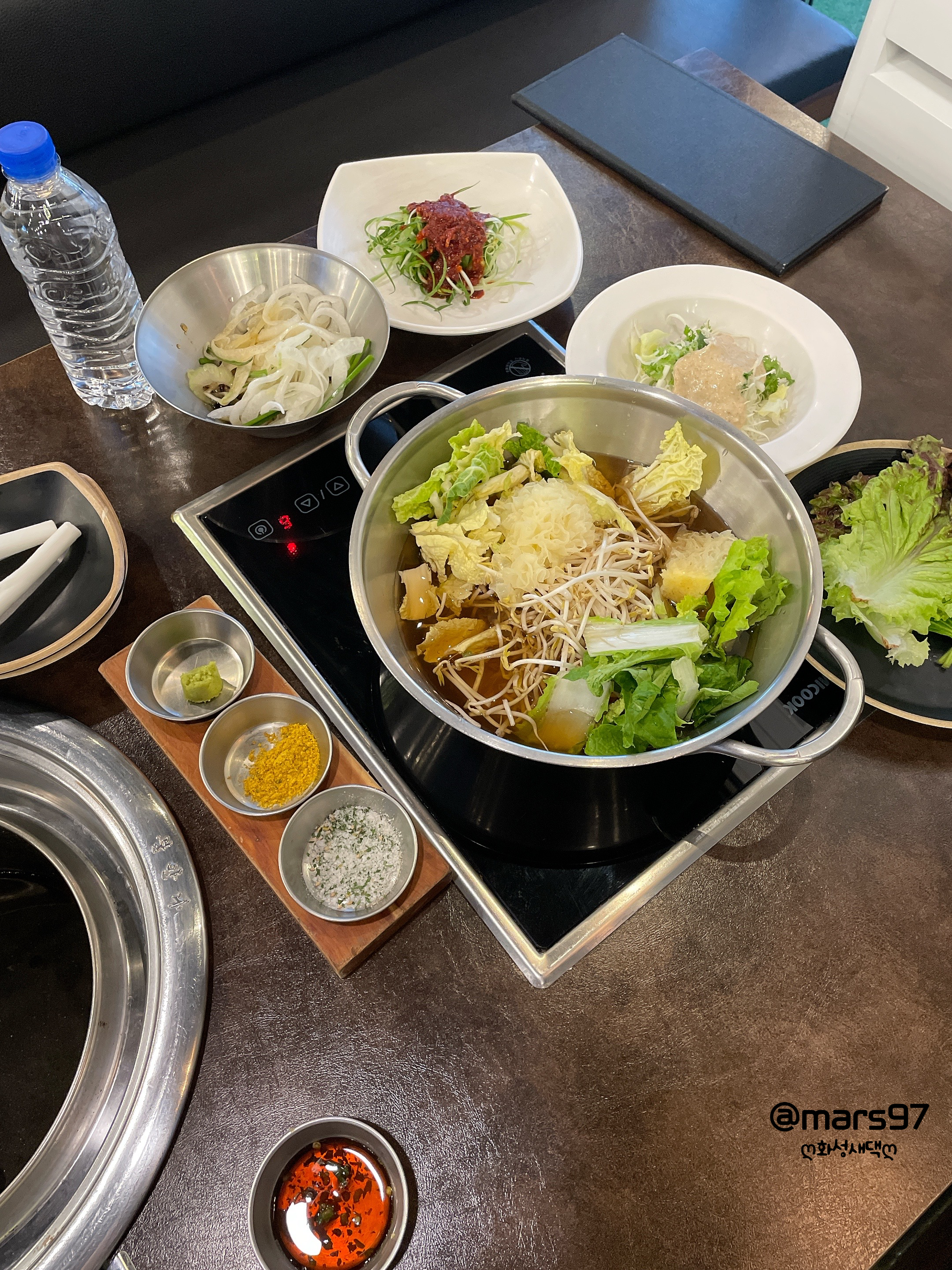 주문을 하고 나니 샤브샤브와 기본 밑반찬을 세팅해 주셨어요