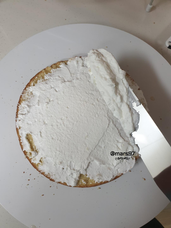 그다음은! 생크림을 발라줄 거예요